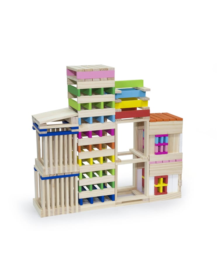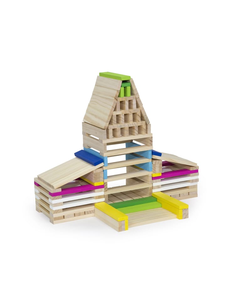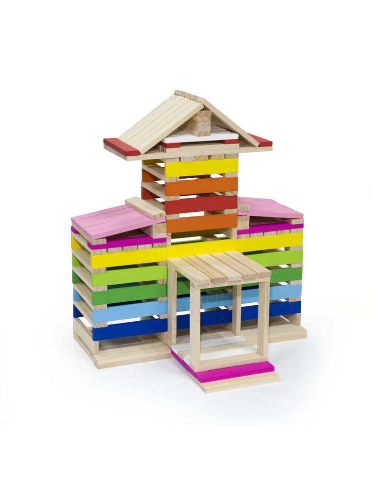 Drewniane klocki kreatywne marki Viga sprawią mnóstwo radości i zapewnią zabawę na wiele godzin całej rodzinie. Zestaw zawiera aż 250 elementów z czego 150 jest w naturalnej fakturze drewna, a pozostałe 100 jest pomalowane na 10 różnych kolorów. Z klocków można budować nieograniczoną ilość przestrzennych konstrukcji. Pomocna może się okazać, dołączona książeczka z propozycjami.