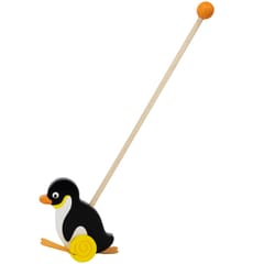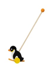 Śliczny kontrastowy pingwinek podczas „spaceru” zabawnie klapie gumowymi łapkami, co dodatkowo zachęca Maluszka do wędrówek i wypraw w jego towarzystwie. Drewniane kółeczka wyposażone zostały w antypoślizgowe łapki, które imitują spacer pingwinka.