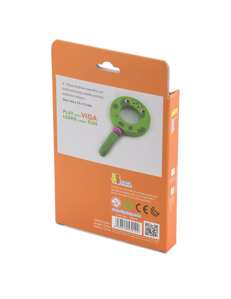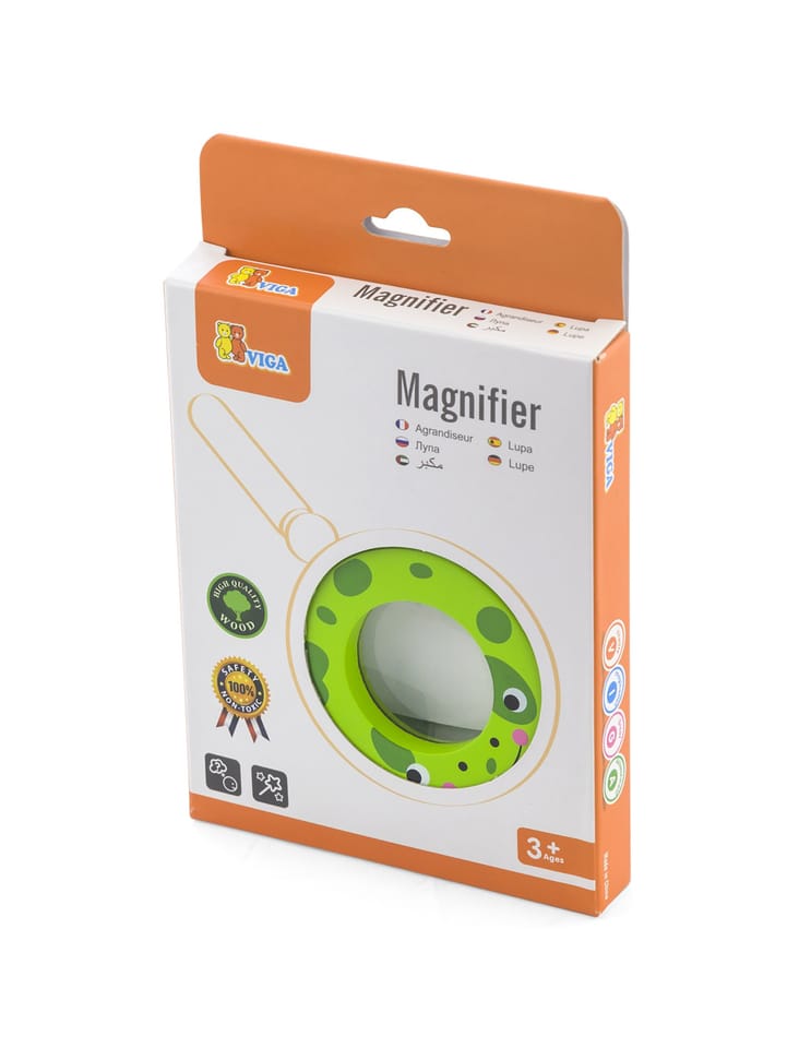 Dzieci często pytają… Mamooo co to jest?Dlaczego? Po co?Aby wspomóc małych ciekawskich odkrywców firma VIGA prezentuje lupę, która z pewnością ucieszy nie jednego smyka. . Wyjątkowo istotnym elementem w rozwoju i edukacji dziecka jest nauka przez zabawę, lupa z pewnością ucieszy i pobudzi jego ciekawość. Wprowadzi go w świat przygód, pozwoli na nowo odkryć znany już ogródek, łąkę, park… Dostarczy mu wielu impulsów do dalszego poszukiwania odpowiedzi na pytania… Dlaczego? Jak? Gdzie?Odkrywanie świata wzbogaci jego słownictwo – zachęci do opowiadania coraz to nowych historii o mrówce, biedronce, ślimaku które odkryją na nowo.Poręczna forma zabawki sprawi że dziecko nie rozstanie się z nią podczas zabawy w domu, a także na podwórku…Zabawka wykonana z najwyższej jakości materiałów – bezpieczna dla dzieci.Spełnia normę EN71Wymiary: 145 x 75 x 15 mm