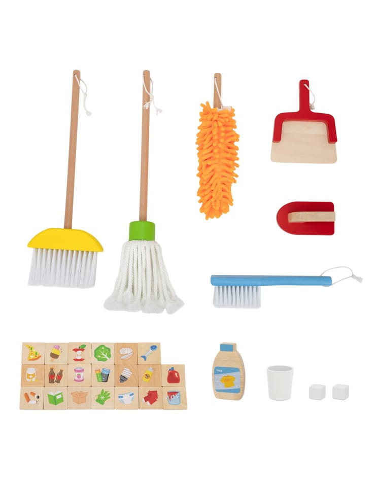 - - 5 narzędzi do sprzątania (miotła, mop, szczotka, zmiotka, szufelka)