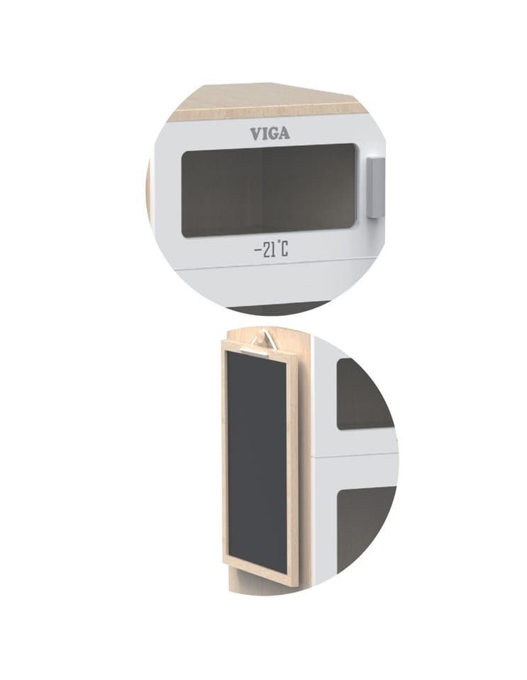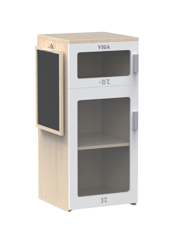 Uzupełnij kącik zabaw swojego dziecka o uroczą drewnianą lodówkę Viga. Ta realistyczna zabawka to świetny sposób na rozwijanie wyobraźni i kreatywności podczas zabawy w dom. Lodówka posiada dwie komory - zamrażarkę i chłodziarkę, dzięki czemu dziecko może wyobrażać sobie, że przechowuje swoje produkty w odpowiednich temperaturach. Dodatkowo, na drzwiach lodówki znajduje się tablica kredowa, na której maluch może zapisywać listę zakupów lub rysować.