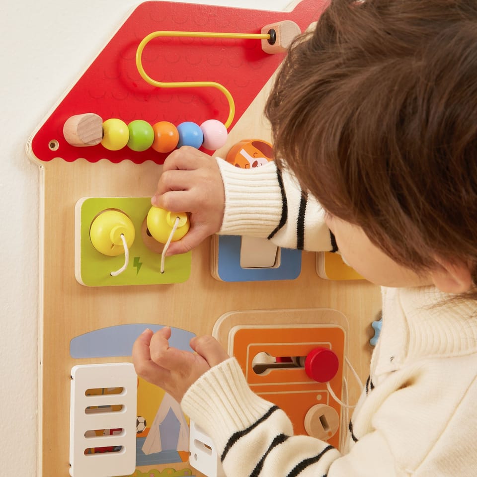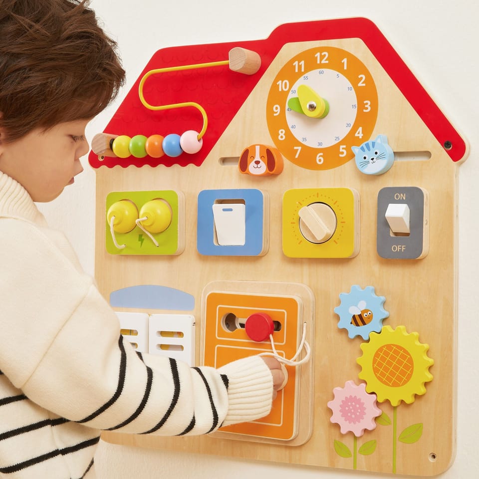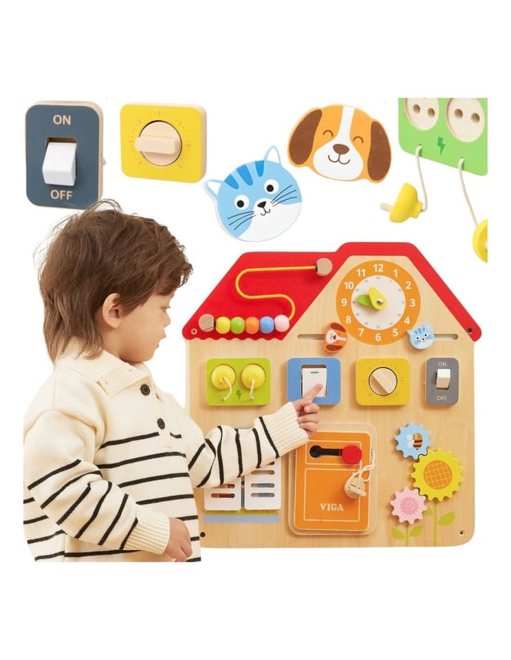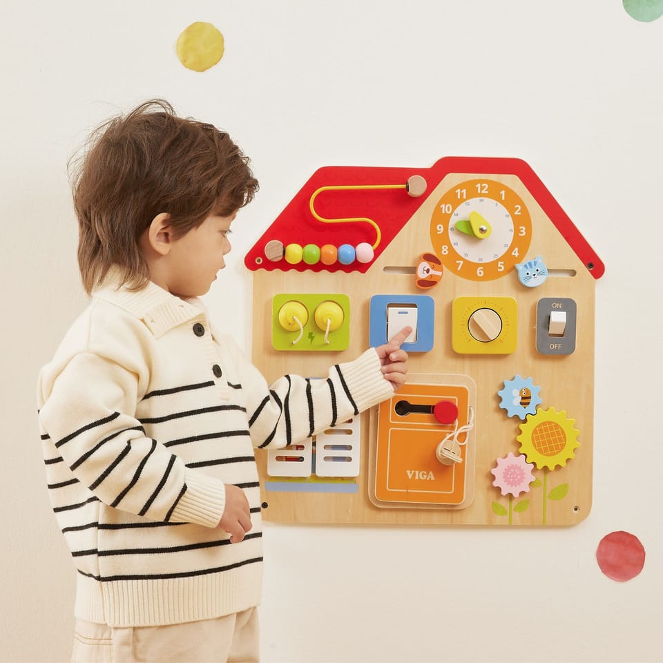 Ta urocza, kolorowa tablica manipulacyjna "Domek" od marki Viga! to fantastyczna zabawka, która w mgnieniu oka rozbudzi ciekawość Twojego dziecka i zachęci je do aktywnej, wciągającej zabawy! Przemyślany design w kształcie domku kryje aż 8 interaktywnych elementów, które zapewniają długie godziny kreatywnego zajęcia. Otwierane drzwi, przesuwane suwaki, ruchome zębatki i labirynt z koralikami – to tylko część atrakcji, które wspierają rozwój motoryczny i koordynację. Tablicę można łatwo zamontować na ścianie lub położyć na stole, co czyni ją niezwykle praktyczną i uniwersalną. To idealny prezent dla maluchów od 18. miesiąca życia, gwarantujący naukę przez zabawę!