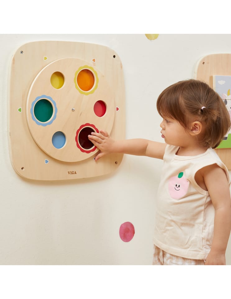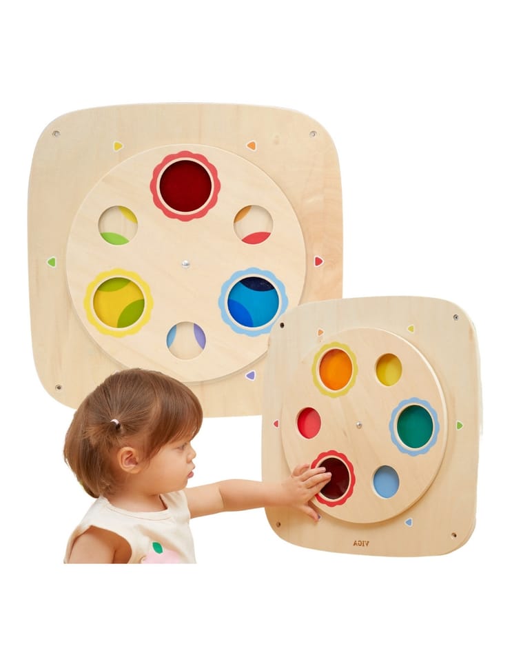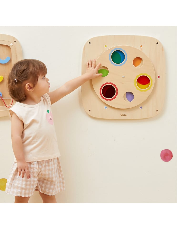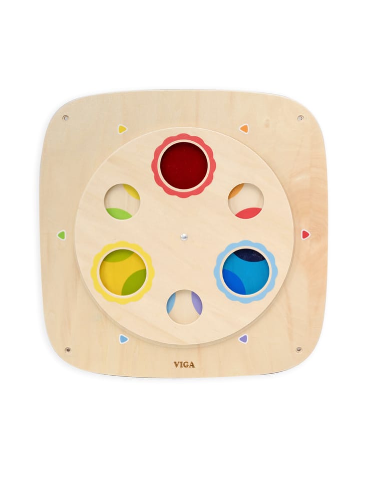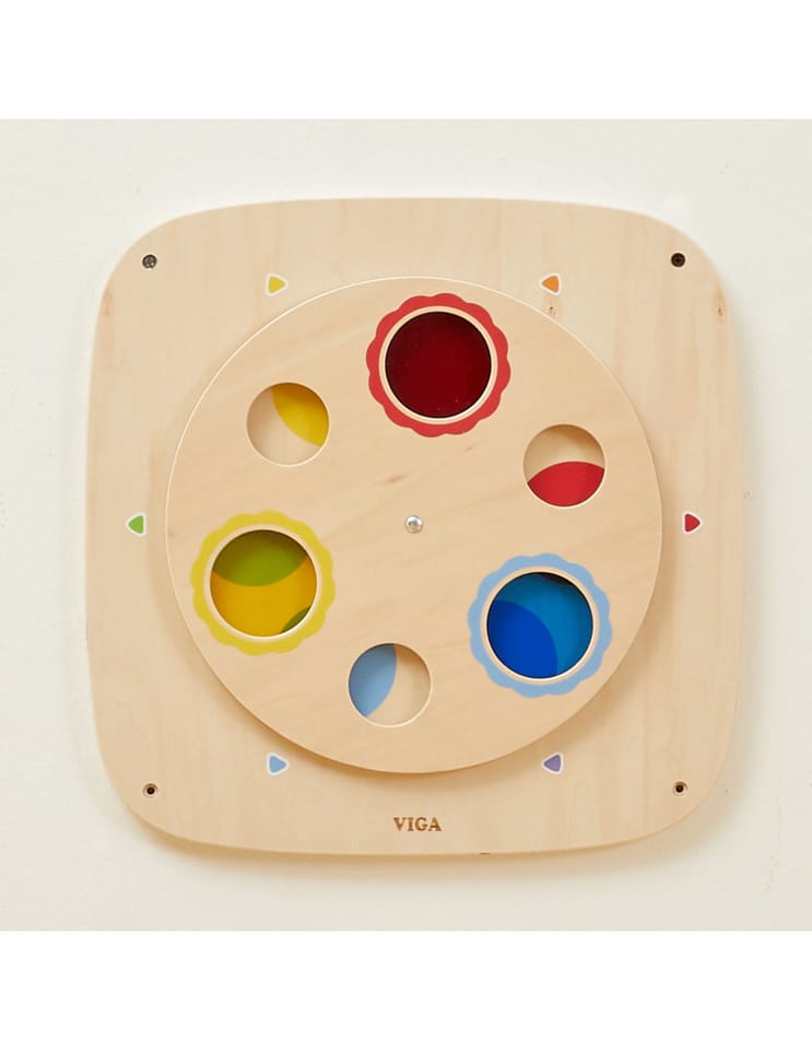 Odkryj magiczny świat kolorów z tą interaktywną tablicą drewnianą od VIGA! Ta edukacyjna zabawka została stworzona, aby w zabawny i praktyczny sposób nauczyć dzieci teorii kolorów oraz zależności przyczynowo-skutkowych. Dzięki obracanemu górnemu panelowi, dziecko może eksperymentować z łączeniem kolorów, tworząc nowe odcienie. Panel jest trwały, bezpieczny i łatwy w montażu na ścianie, co pozwala zaoszczędzić miejsce na podłodze. To idealny dodatek do pokoju malucha, przedszkola lub kącika zabaw.
