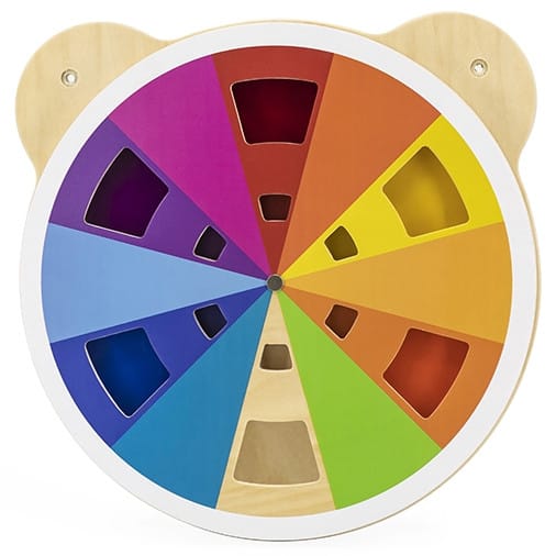 - - zabawa polega na przekręcaniu akrylowej wierzchniej tarczy mieszając kolory z tarczą pod spodem i otrzymywania nowych barw w wyniku mieszania się dwóch innych kolorów