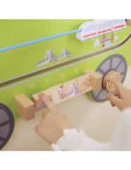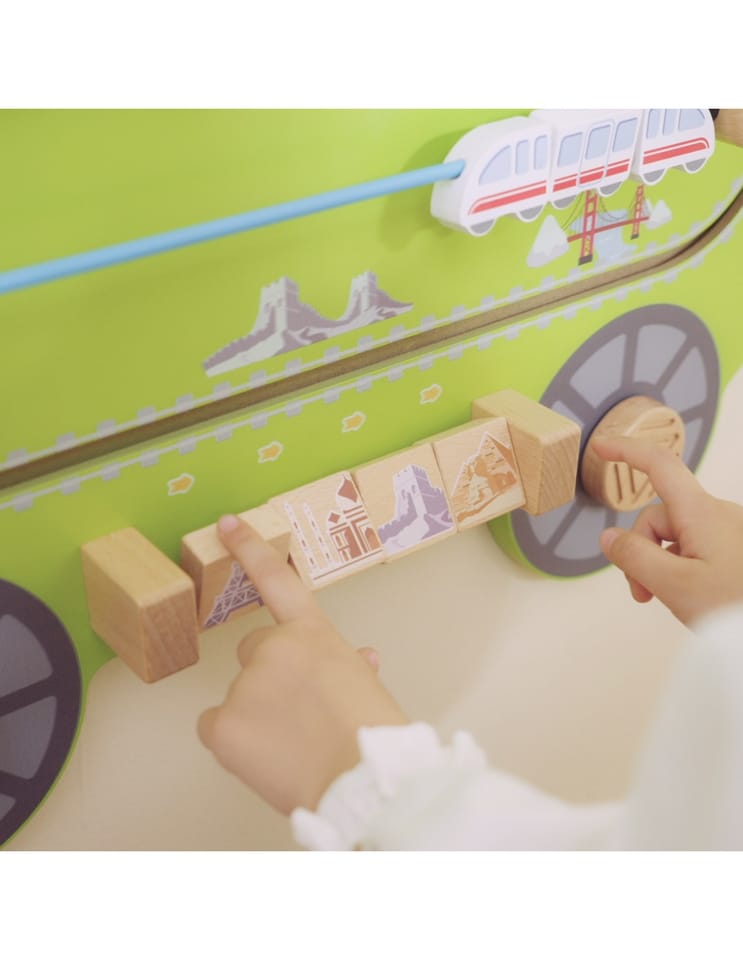 - - Zielony wagon z interaktywnym torem i obrotowymi klockami.