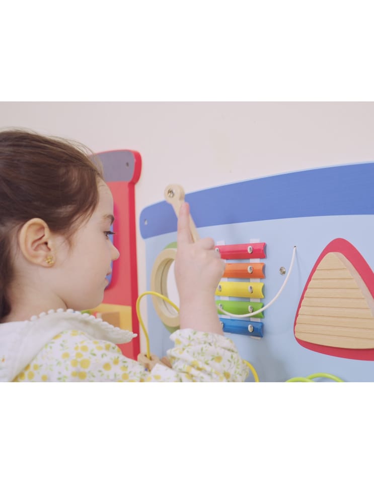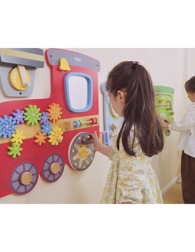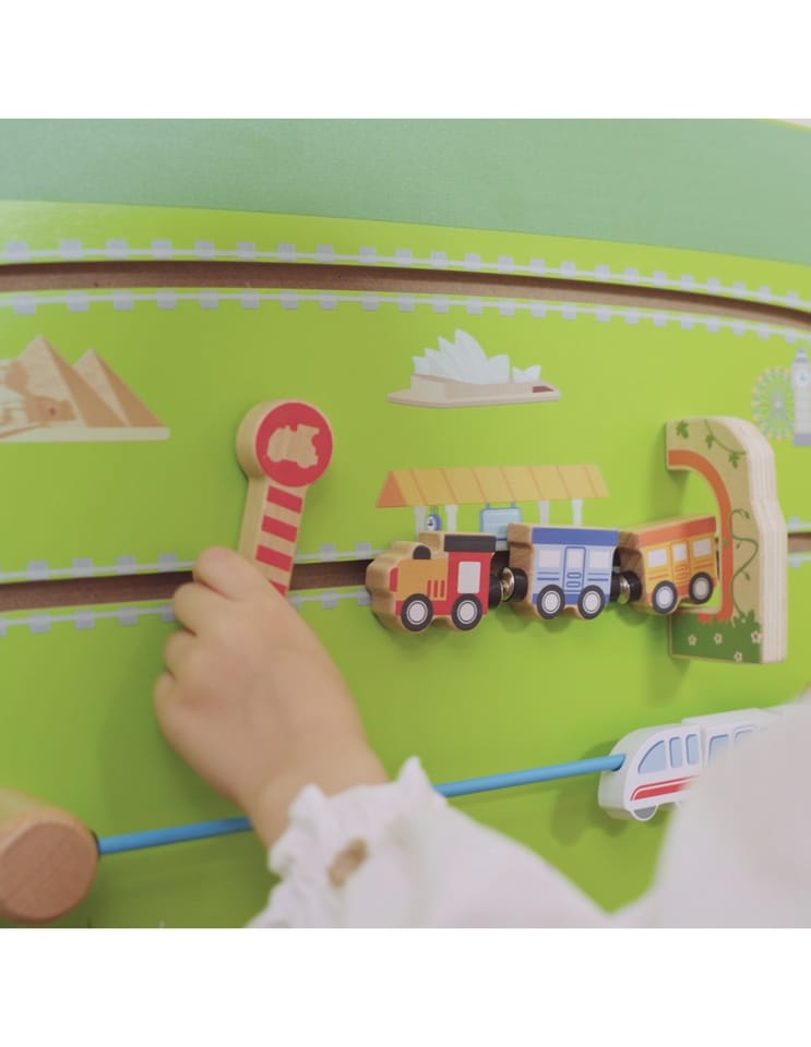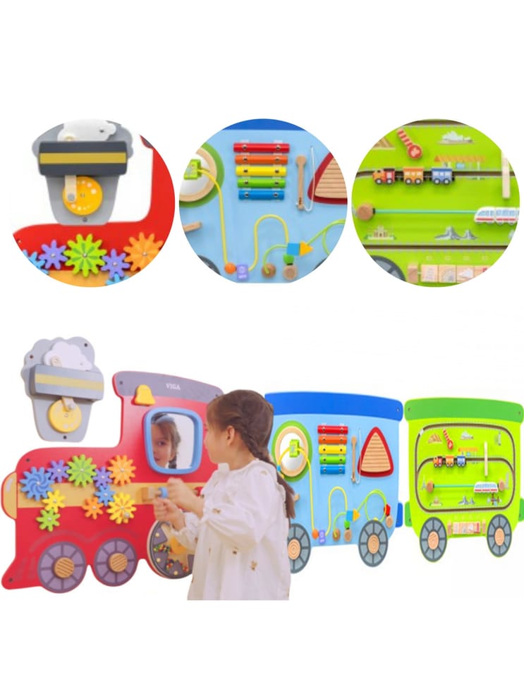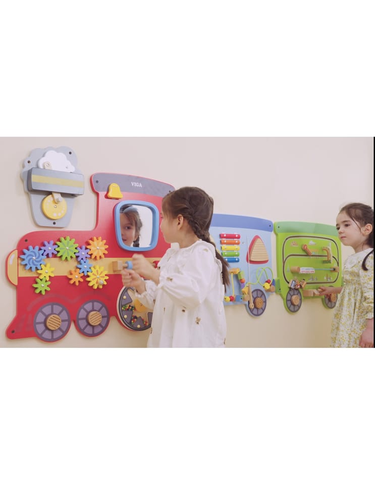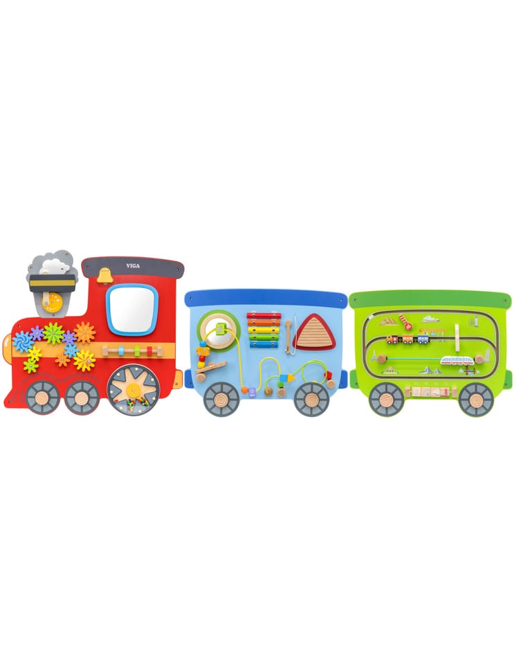 Ta wyjątkowa tablica sensoryczna w kształcie kolorowego pociągu od Viga Toys zamienia ścianę w centrum edukacyjnej zabawy i odkrywania! Każda z trzech sekcji – lokomotywa i dwa wagony – oferuje różnorodne elementy do przesuwania, obracania i naciskania, które wciągają dzieci w sensoryczne eksperymenty. Maluchy rozwijają zręczność, koncentrację i koordynację podczas zabawy z kołami zębatymi, cymbałkami, pętlami i interaktywnym torem. To idealna pomoc Montessori do domu, przedszkola lub sali zabaw – wspiera naukę przez praktyczne działanie! Wykonana z trwałego, lakierowanego drewna w żywych, bezpiecznych kolorach, zapewnia godziny radosnej, wartościowej rozrywki.