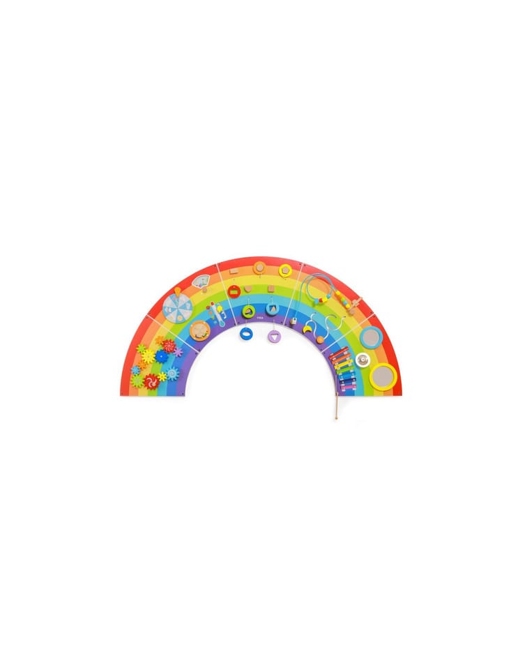 - - drewniana tablica sensoryczno - manipulacyjna w kształcie tęczy przyciąga wzrok i zachęca do zabawy,