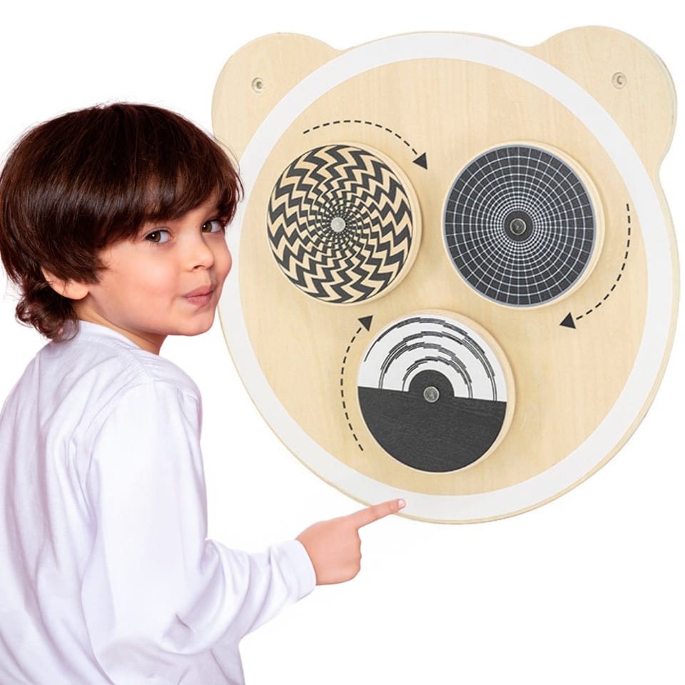 VIGA Drewniana Tablica „Wirujące Punkty” to kreatywna zabawka edukacyjna wykonana w 100% z naturalnego drewna z certyfikatem FSC, która łączy zabawę z nauką. Ta niezwykła tablica z trzema kolorowymi krążkami wywołuje fascynujące złudzenia optyczne, rozwijając przy tym obserwację i ciekawość dziecka. Przykuwa uwagę maluchów i zachęca do samodzielnej, twórczej aktywności. Malowana nietoksycznymi farbami w żywe barwy, jest bezpieczna nawet dla najmłodszych od 18. miesiąca życia. To doskonały sposób na rozwój logicznego myślenia, wyobraźni i zdolności manualnych Twojego dziecka. Idealna do domu, żłobka, przedszkola czy sali zabaw. W naszej ofercie dostępna jest cała seria tablic sensorycznych.
