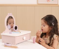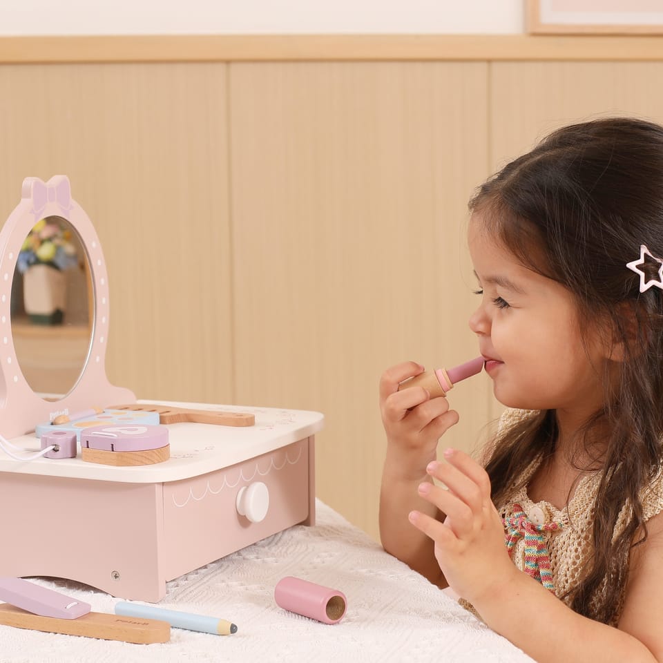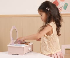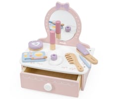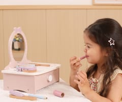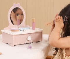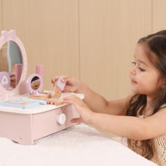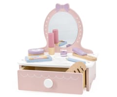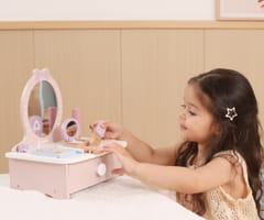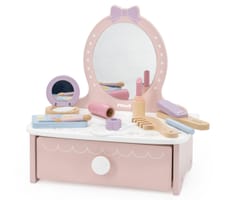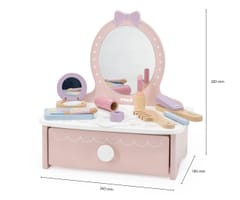 Śliczna, drewniana toaletka z marki Viga to idealny zestaw do zabawy dla każdej dziewczynki, która lubi przebieranki, zabawę w dom czy salon piękności. Zaprojektowana w pastelowych kolorach, z bezpiecznym lusterkiem i mnóstwem uroczych dodatków, sprawi dziecku mnóstwo radości i zajmie je na długie godziny.Ta urocza, drewniana toaletka to nie tylko zabawka – to brama do świata fantazji i kreatywnej zabawy!