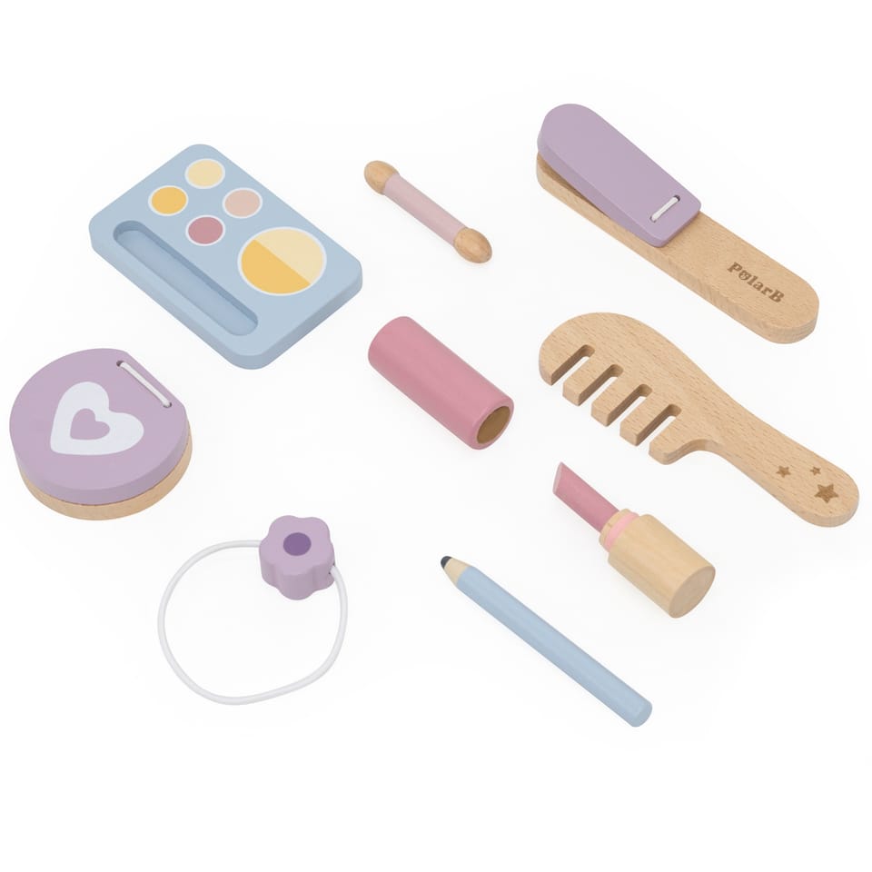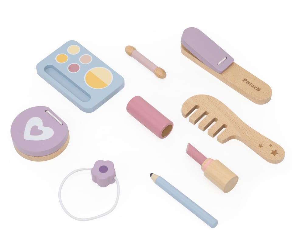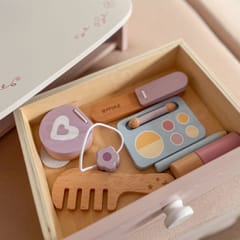 ✔️Szminka✔️ Grzebień✔️ Paletka cieni do oczu✔️ kredka do oczu✔️ Prostownica do włosów✔️ Pędzelek ✔️ Puder z lusterkiem✔️ Naszyjnik ✔️ Szuflada ✔️ Duże lusterko