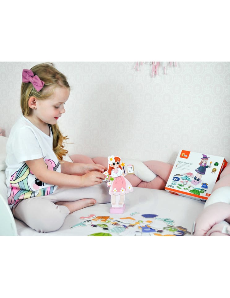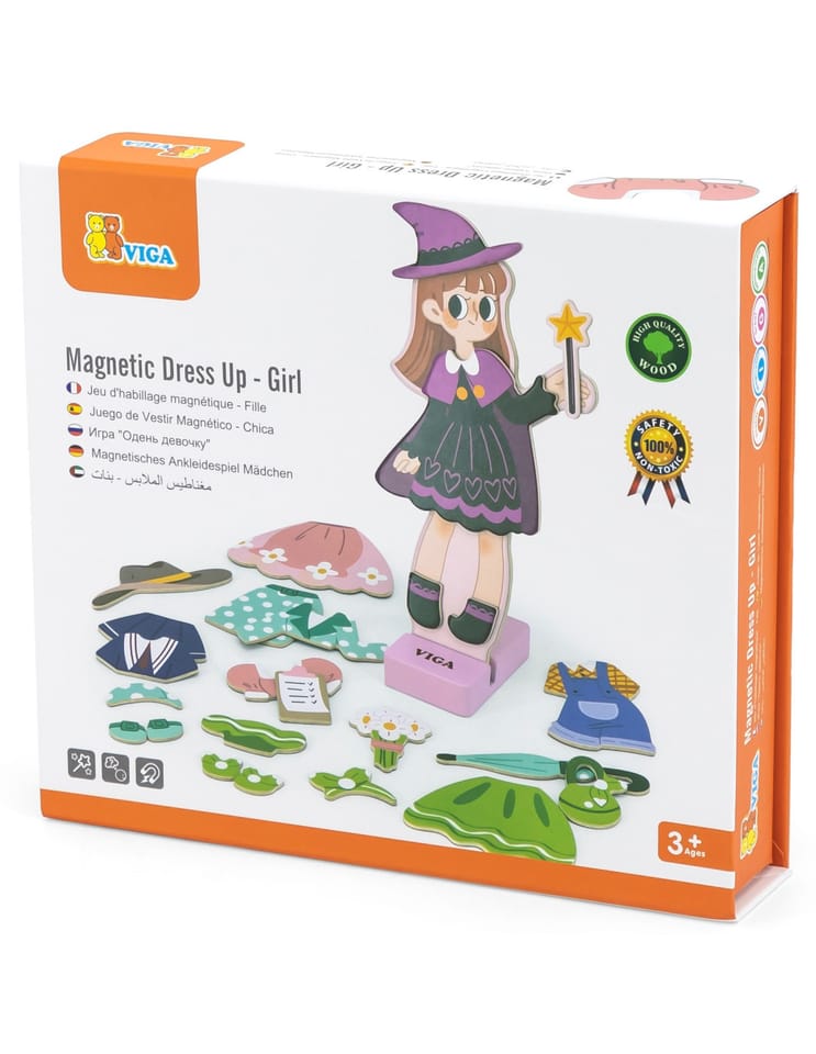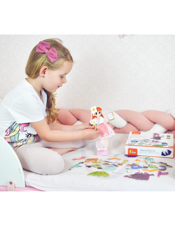 Magnetyczna ubieranka - dziewczynka od firmy Viga to doskonała zabawka dla wszystkich dzieci. Figurkę można dowolnie ubierać w dane zestawy ubranek lub przebierać je w dowolne kombinacje.