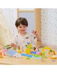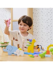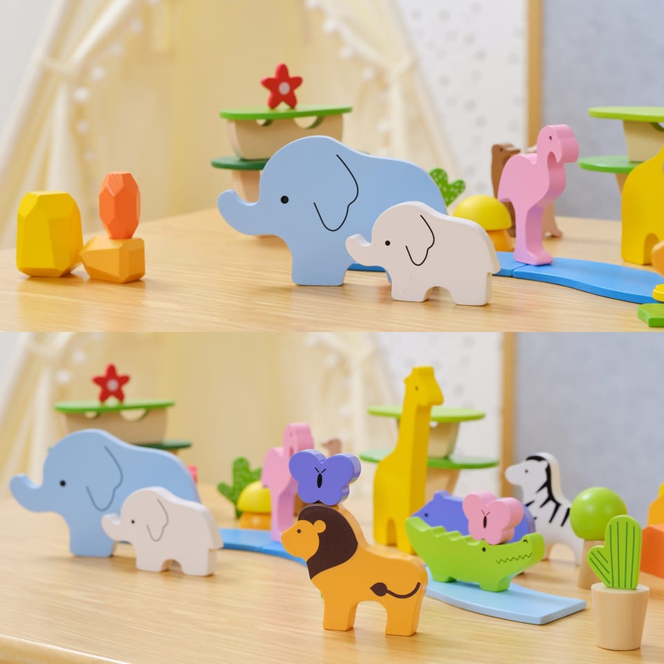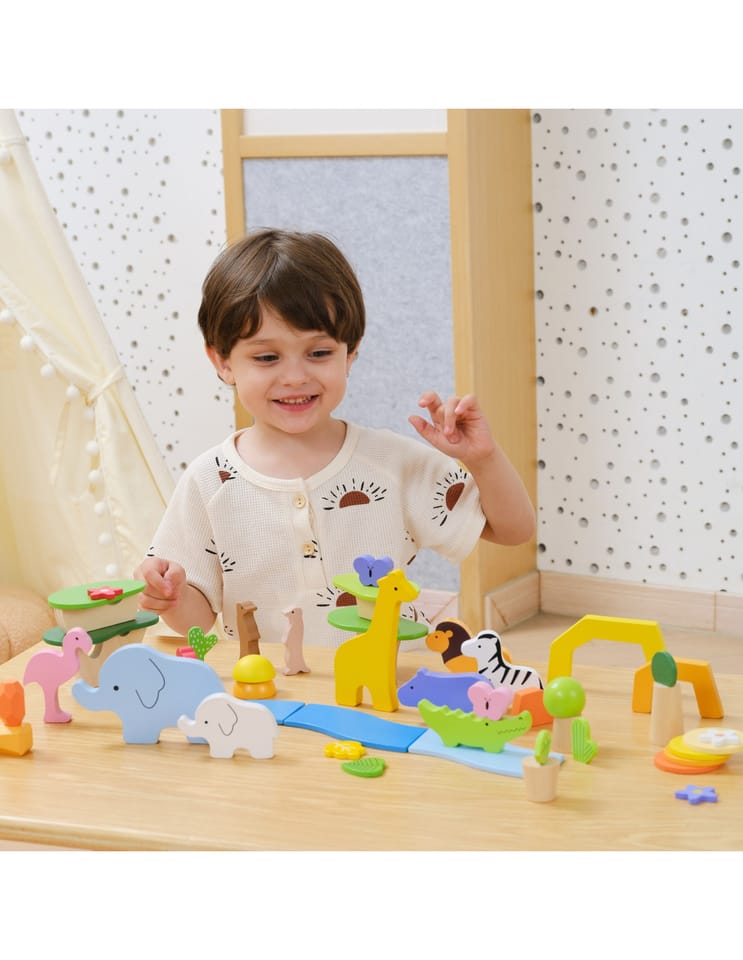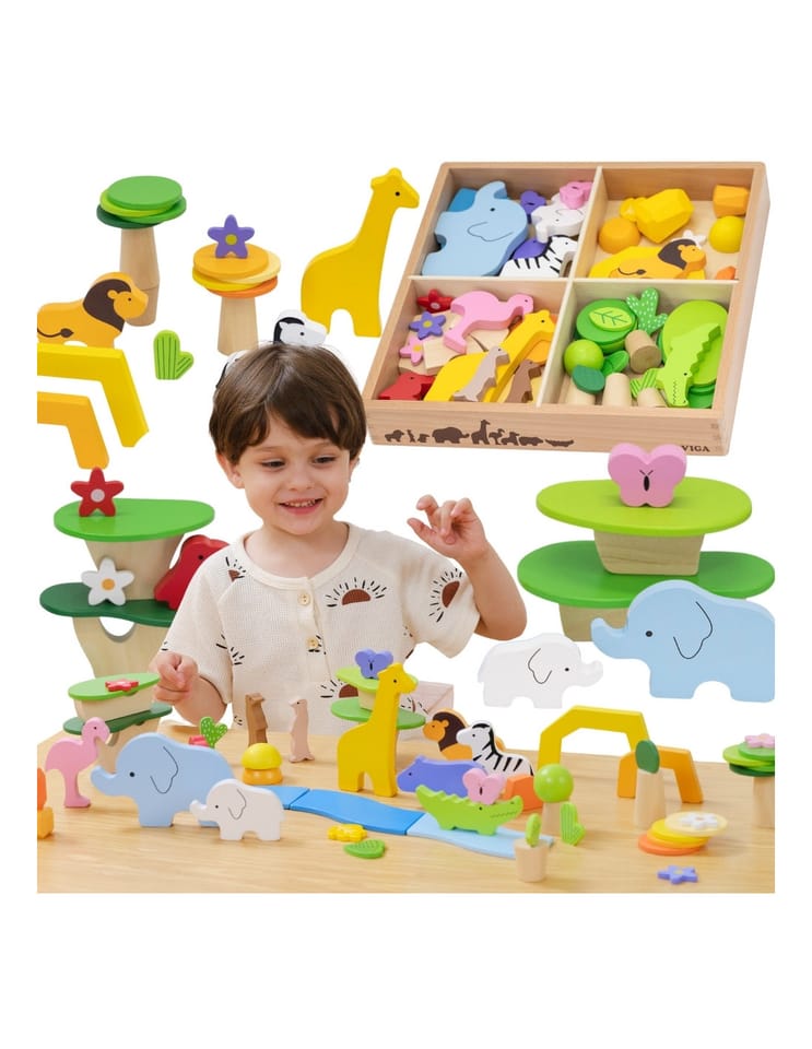 Przenieś swoje dziecko w świat afrykańskiej przygody z zestawem VIGA Kolorowe Klocki Opowieści Tropikalne! Ten niezwykle bogaty komplet, składający się z 55 drewnianych, luźnych elementów, to esencja swobodnej zabawy i nauki w duchu Montessori. Figurki zwierząt z sawanny – słonia, żyrafy, lwa i zebry – oraz elementy tropikalnej roślinności i rzeki, inspirują maluchy do tworzenia własnych scenariuszy i rozwijania kreatywności. Klocki wspierają małą motorykę i koncentrację, a dzięki wygodnemu, drewnianemu pudełku z przegródkami, sprzątanie jest równie łatwe jak zabawa.