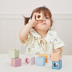 - - 8 drewnianych klocków sensorycznych