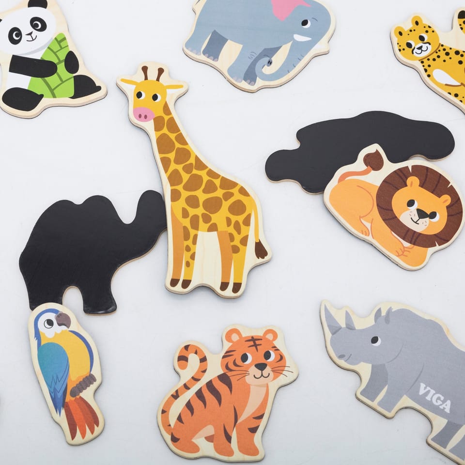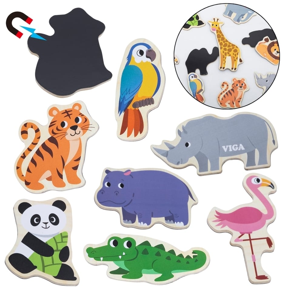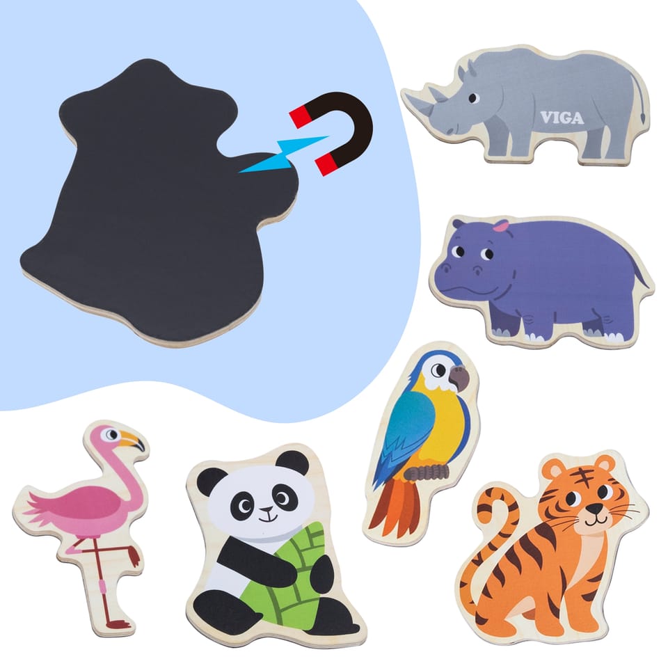 Odkryj fascynujący świat natury z zestawem Dzikie Zwierzęta od renomowanej marki Viga! Ten zestaw 20 drewnianych magnesów przeniesie Twoje dziecko w świat egzotycznych zwierząt – od lwa i żyrafy po krokodyla i papugę.Każdy element ma magnetyczny tył, dzięki czemu świetnie trzyma się lodówki, tablicy magnetycznej czy metalowych powierzchni.Kolorowe, realistyczne wzory zachęcają do kreatywnej zabawy i nauki poprzez odkrywanie dzikiej przyrody.To idealny pomysł na prezent, który rozwija wyobraźnię, mowę i zdolności manualne dziecka już od 18. miesiąca życia!