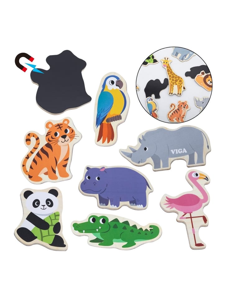 - -20 magnesów (przedstawiających m.in. żyrafę, nosorożca, słonia, kangura, lwa, tygrysa, pandę, strusia, flaminga, małpę, zebrę, wielbłąda, krokodyla, węża, żółwia, szopa, niedźwiedzia i papugę arę)