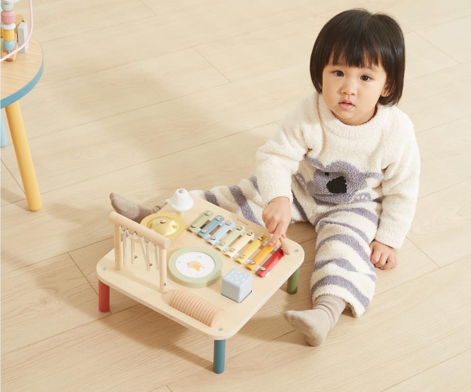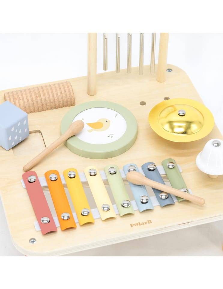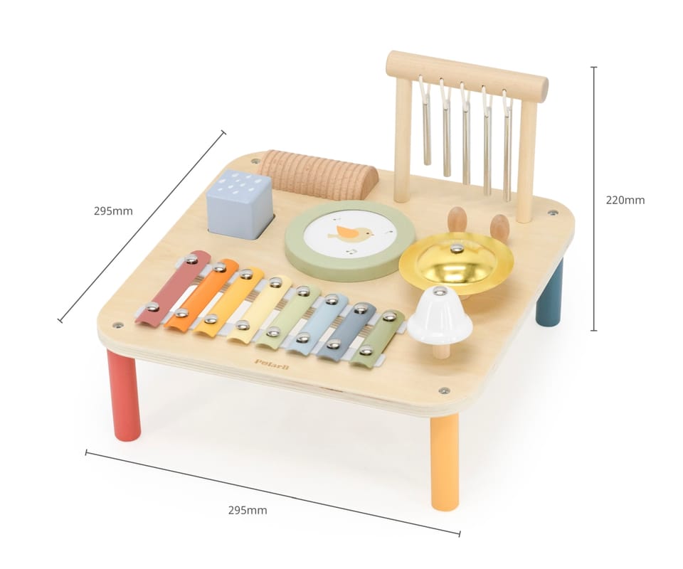 Odkryj magiczny świat dźwięków z naszym drewnianym stolikiem muzycznym! Ta interaktywna zabawka to idealny sposób na rozwijanie słuchu muzycznego, poczucia rytmu i kreatywności Twojego dziecka. Każdy element stolika kryje w sobie inne, fascynujące instrumenty, które zachęcają do eksperymentowania i tworzenia własnych melodii.