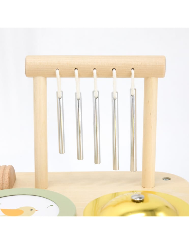 ✔️Cymbałki: Kolorowe płytki wydają czyste, melodyjne dźwięki, wprowadzając w świat muzyki.✔️Talerz perkusyjny: Metalowy talerz o bogatym brzmieniu, idealny do wybijania rytmu.✔️Bębenek: Drewniany bębenek o ciepłym, głębokim brzmieniu, doskonały do nauki rytmu.✔️Dzwonki: Delikatne, metaliczne dzwoneczki o przyjemnym, kojącym dźwięku.✔️Guiro: Drewniany instrument perkusyjny, który wydaje charakterystyczny dźwięk podczas pocierania.✔️Grzechotka: Drewniana grzechotka o łagodnym, rytmicznym dźwięku, idealna dla najmłodszych muzyków.✔️Pałeczki: Dwie drewniane pałeczki, idealne do wybijania rytmu i eksplorowania dźwięków.