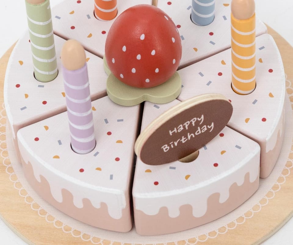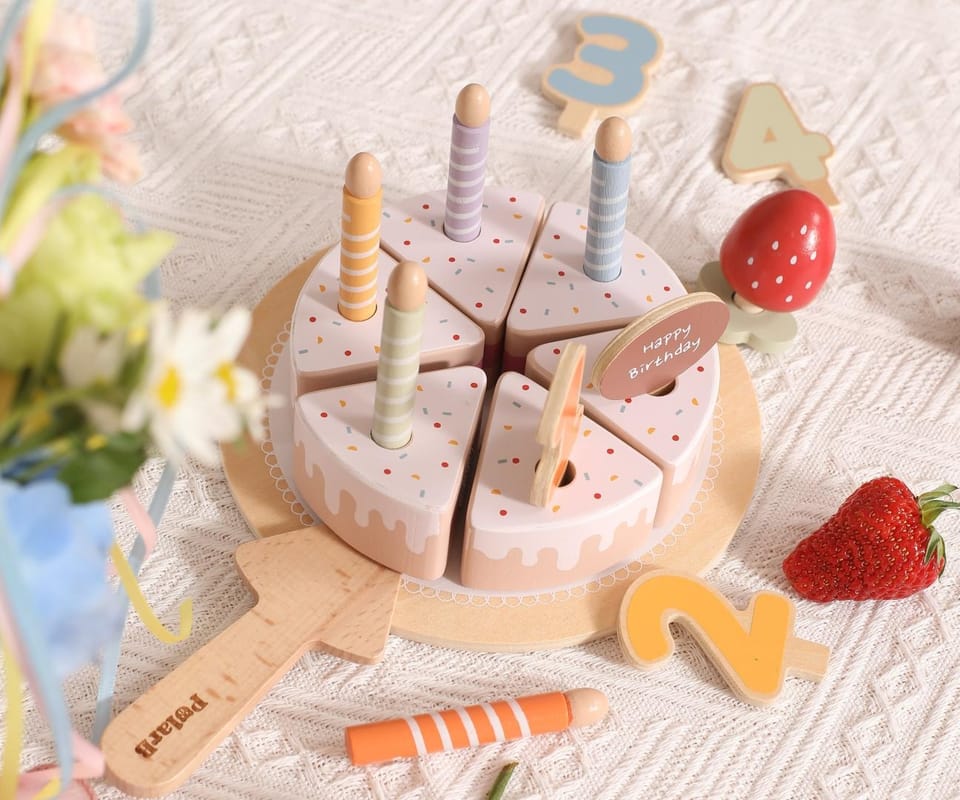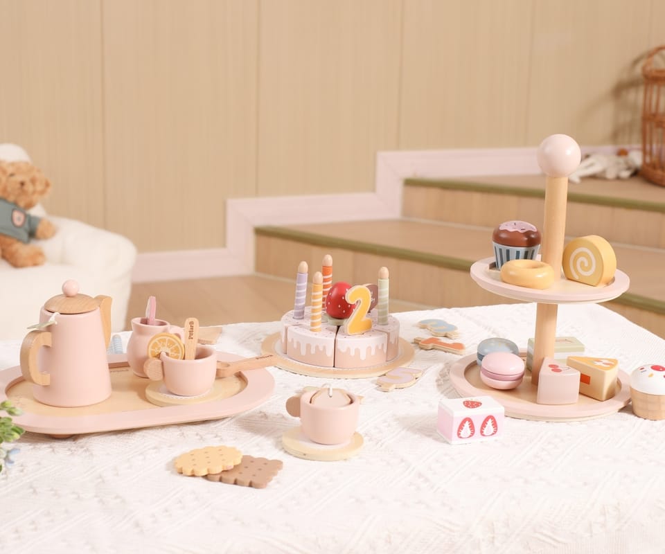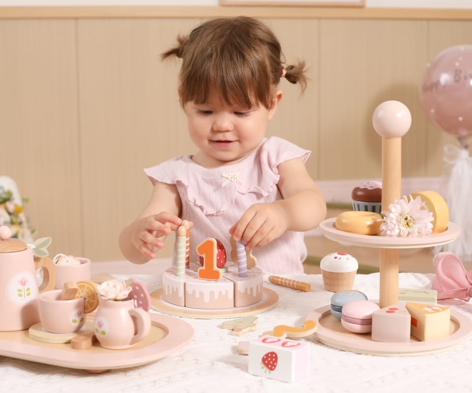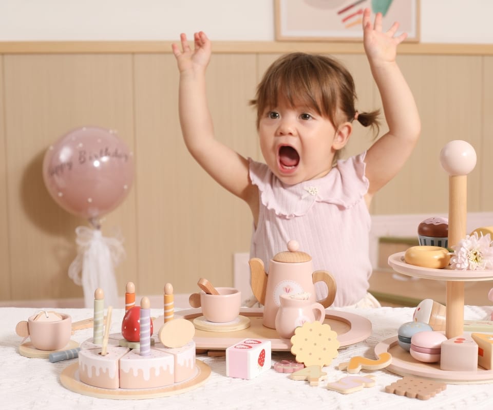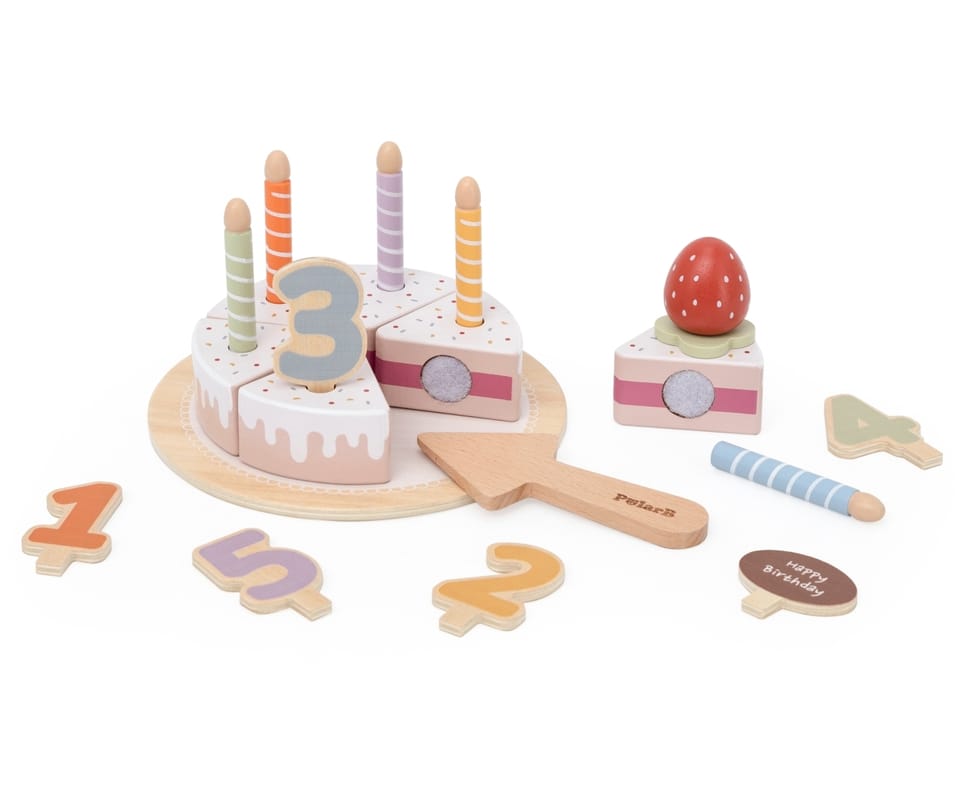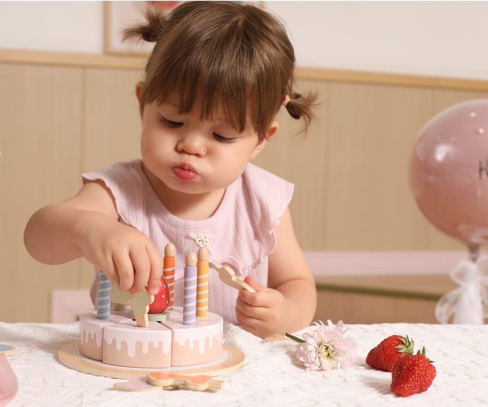 Drewniany Tort Urodzinowy od marki Viga to wyjątkowy zestaw, który sprawi, że każda zabawa w przyjęcie stanie się niezapomniana! Składa się z realistycznych elementów takich jak kawałki ciasta, świeczki i dekoracje, które można dowolnie układać. Dzięki rzepom maluch może łatwo kroić i łączyć kawałki, ucząc się współpracy i dzielenia podczas wspólnej zabawy. To idealny dodatek do zabawy w kuchnię, przyjęcia urodzinowe i wspólne spotkania z rodziną czy przyjaciółmi.