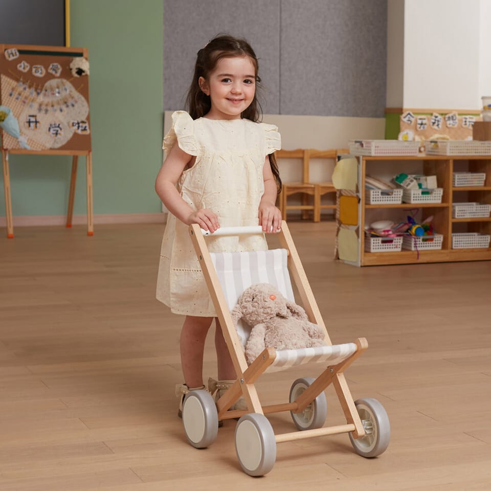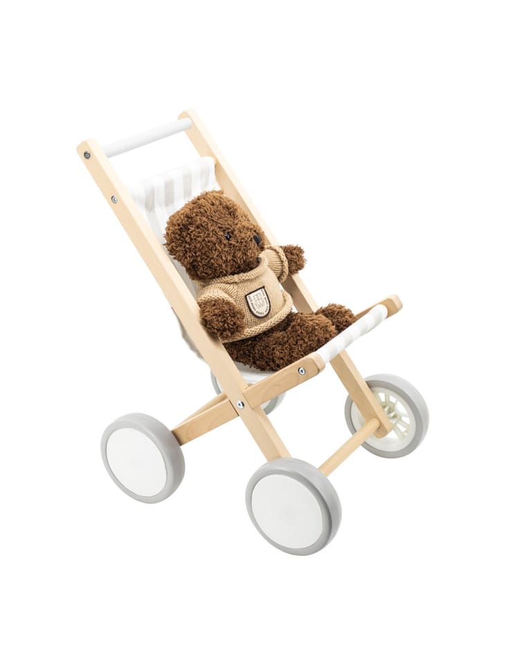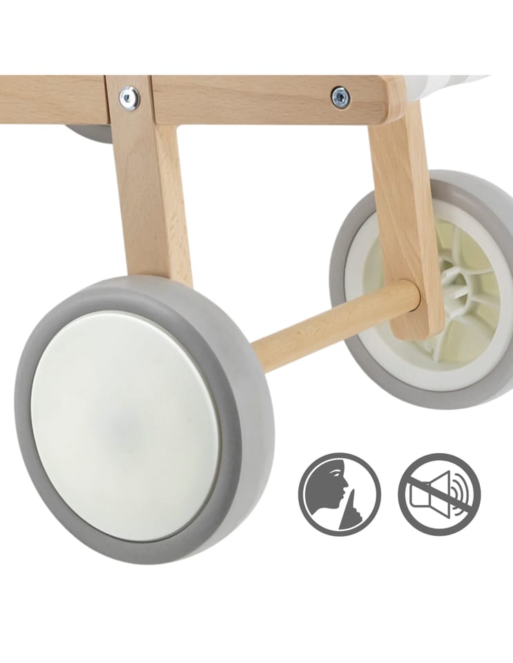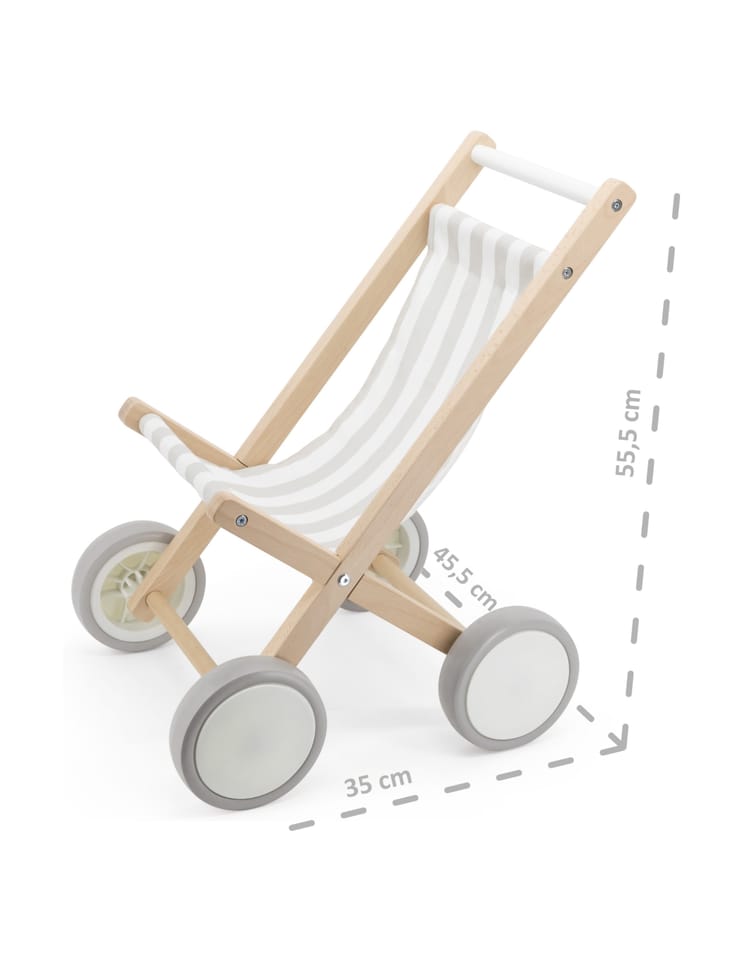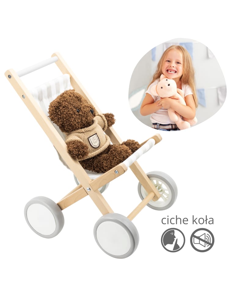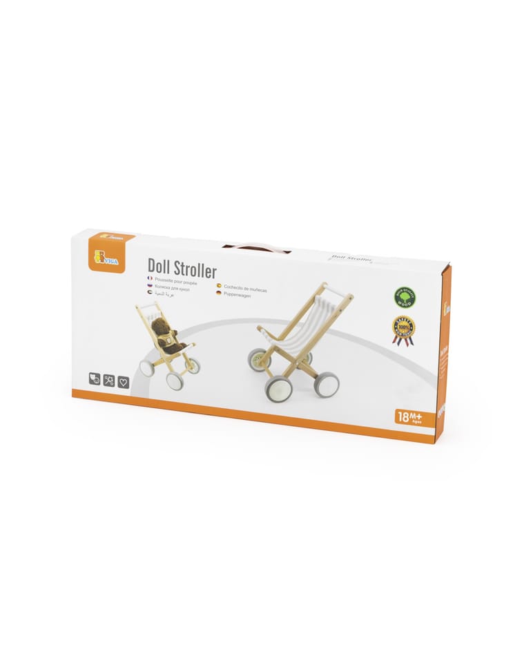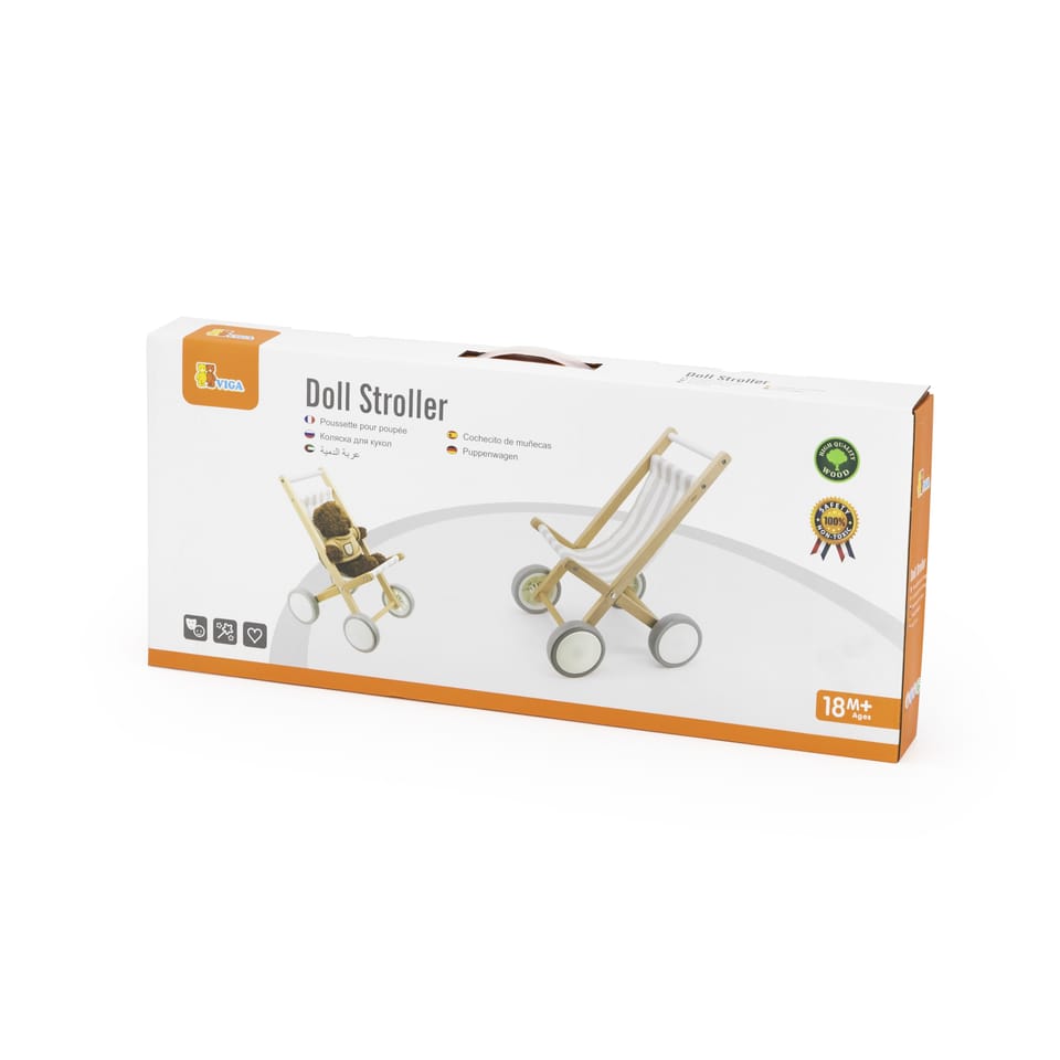 Wózek dla Lalek od marki VIGA wykonany z solidnego drewna bukowego, z dużymi plastikowymi kołami i gumowymi, antypoślizgowymi oponami. Przeznaczony jest dla lalek o rozmiarze do 38 cm.