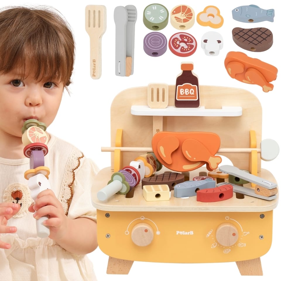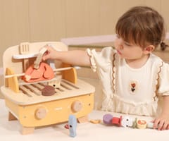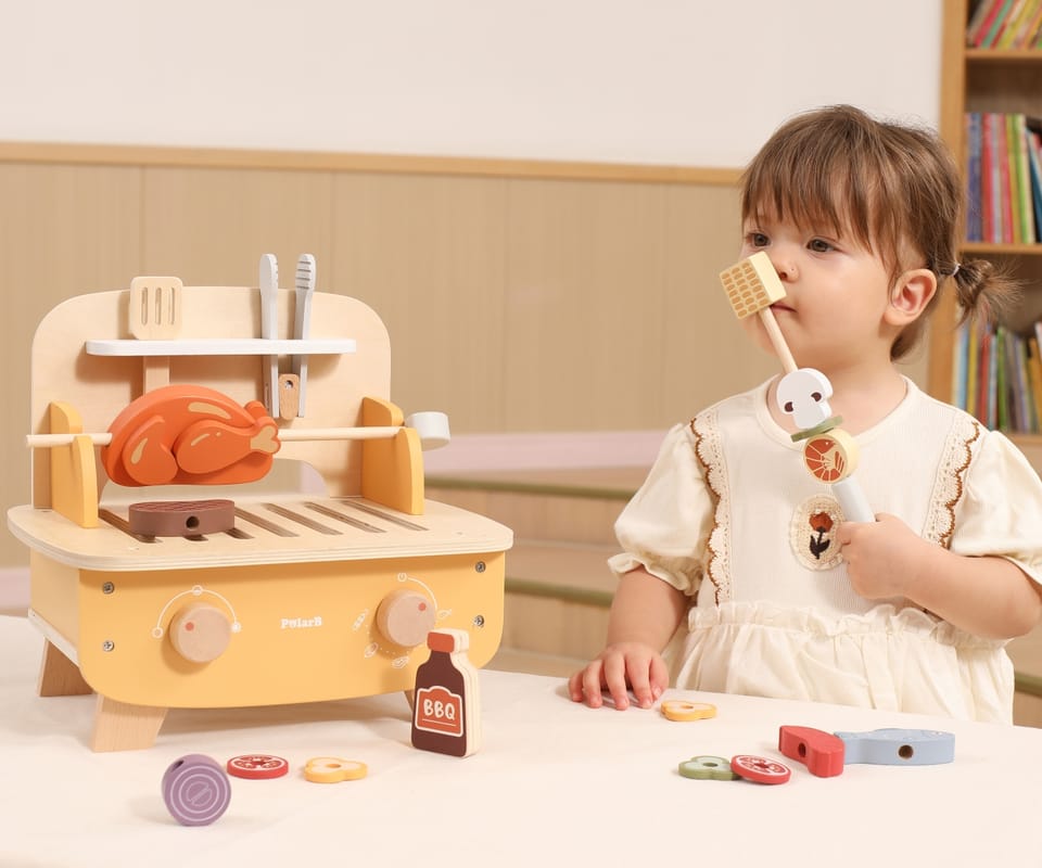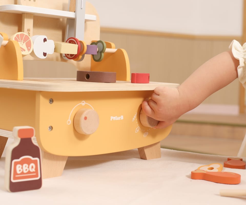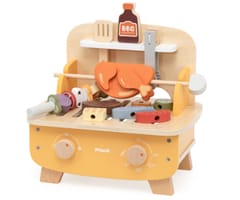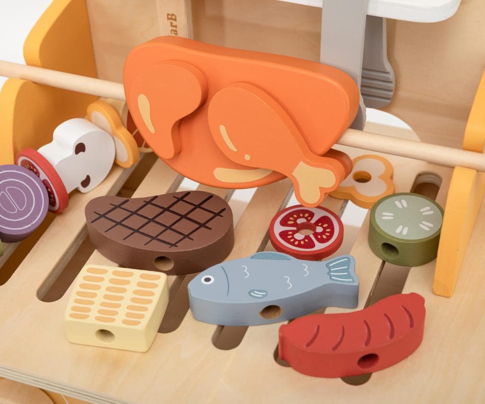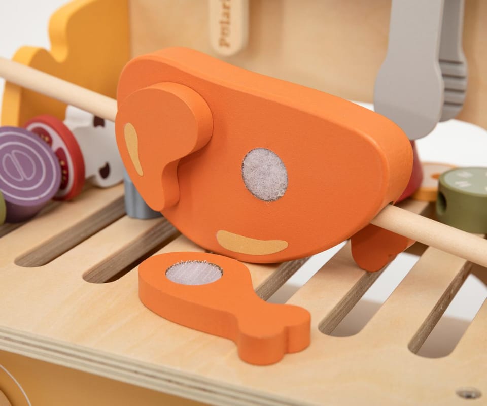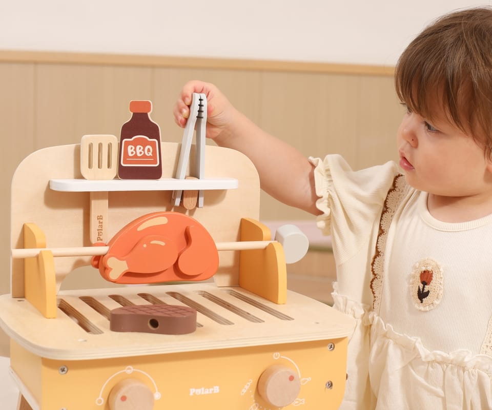 Rozpal wyobraźnię swojego malucha dzięki wyjątkowemu zestawowi do grillowania od marki VIGA ! Dzieci już od 18 miesiąca życia mogą wcielić się w rolę małych kucharzy i bawić się w grillowanie niczym dorośli. Szaszłyki do obracania, przyprawy do posypywania i realistyczne akcesoria sprawiają, że zabawa staje się niezwykle autentyczna. 22 elementy pozwalają na niekończone kombinacje smaków – od kurczaka, przez rybę, aż po kolorowe warzywa. To idealny sposób na rozwój kreatywności, zdolności manualnych i naukę rozpoznawania jedzenia w formie bezpiecznej, drewnianej zabawy.