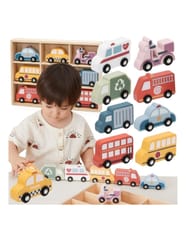 Odkryj gwarne miasto z Drewnianym Zestawem Pojazdów Miejskich od marki Viga! Ten solidnie wykonany komplet to aż 9 uroczych samochodzików, które odzwierciedlają pojazdy służbowe i codziennego użytku, idealnie dopasowane do małych rączek dzieci od 24 miesiąca życia. Znajdziesz tu m.in. wóz strażacki, ambulans, taksówkę i autobus piętrowy. Zabawka wspiera rozwój kreatywności i wyobraźni, pozwalając maluchom tworzyć ekscytujące sceny z życia miasta. Dzięki dołączonej drewnianej skrzynce z przegródkami, autka są łatwe do uporządkowania i zabrania ze sobą w każdą podróż.