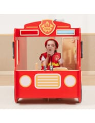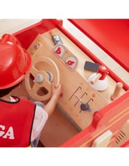 - - Interaktywna kabina z ruchomą kierownicą, drążkiem zmiany biegów i przyciskiem włączającym dźwięk syreny!