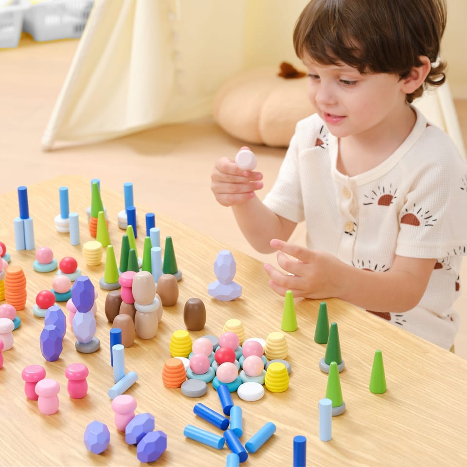Klocki Nature Treasures VIGA to 141 luźnych elementów inspirowanych naturą – grzyby, plastry miodu, kamienie i stożki. Dzięki otwartej formie klocki nie narzucają zasad – dziecko może swobodnie sortować, budować i tworzyć własne historie. Zestaw wspiera rozwój manualny, koncentrację i wyobraźnię, będąc idealnym narzędziem do zabawy sensorycznej i artystycznej. To coś więcej niż zabawka – to inwestycja w rozwój Twojej pociechy!