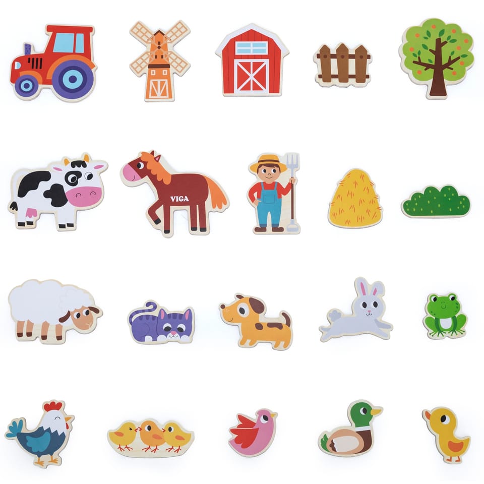 Poznaj urocze zwierzątka z farmy w formie magnesów drewnianych od marki VIGA, magnetycznych figurek! Ten zestaw 20 elementów zachęca do zabawy na każdej powierzchni magnetycznej – lodówce, tablicy czy specjalnej macie. Dzieci mogą układać sceny, opowiadać własne historie i poznawać świat zwierząt gospodarskich. Kolorowe, trwałe elementy są lekkie i łatwe do trzymania przez małe rączki. Idealny zestaw do rozwijania kreatywności, języka i zdolności manualnych najmłodszych.