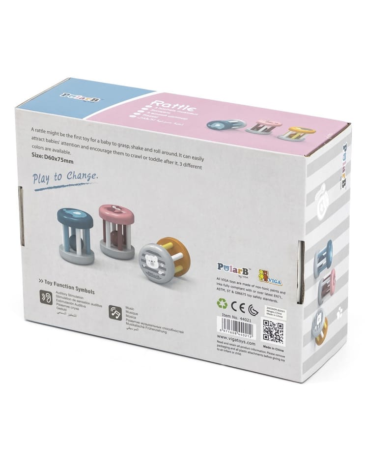 Drewniana grzechotka ze zwierzątkiem z urokliwej serii PolarB od marki Viga to idealna propozycja na pierwszą zabawkę dla Twojego maluszka. Wykonana z najwyższej jakości, trwałego drewna i pomalowana bezpiecznymi farbami w pastelowych odcieniach, przyciąga wzrok i zachęca do odkrywania świata. Poręczny, ergonomiczny kształt został specjalnie zaprojektowany z myślą o małych rączkach, znacząco ułatwiając chwytanie, potrząsanie i swobodne przetaczanie po podłodze. Wewnątrz przemyślanej konstrukcji umieszczono element wydający delikatny, przyjemny dla ucha dźwięk, który nie drażni wrażliwego słuchu niemowlęcia. Zabawka występuje w trzech wariantach ze zwierzątkami i jest wysyłana losowo, stanowiąc wspaniałe, zachęcające wsparcie na etapie nauki raczkowania oraz stawiania pierwszych kroków.