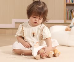 Zabawkowa drewniana kurka z kurczakami do ciągnięcia to cudowny towarzysz pierwszych kroków dla Twojego dziecka od marki Viga Toys. Pisklęta kołyszą się radośnie przy każdym pociągnięciu, a odłączalne jajko daje możliwość samodzielnej zabawy. Solidna konstrukcja z drewna zapewnia trwałość i bezpieczeństwo przez długi czas. Zabawka łączy ruch, odkrywanie i naukę w jednym – stymuluje motorykę i koordynację. Idealny pomysł na prezent, który po prostu cieszy oko i sprawia radość maluchowi.