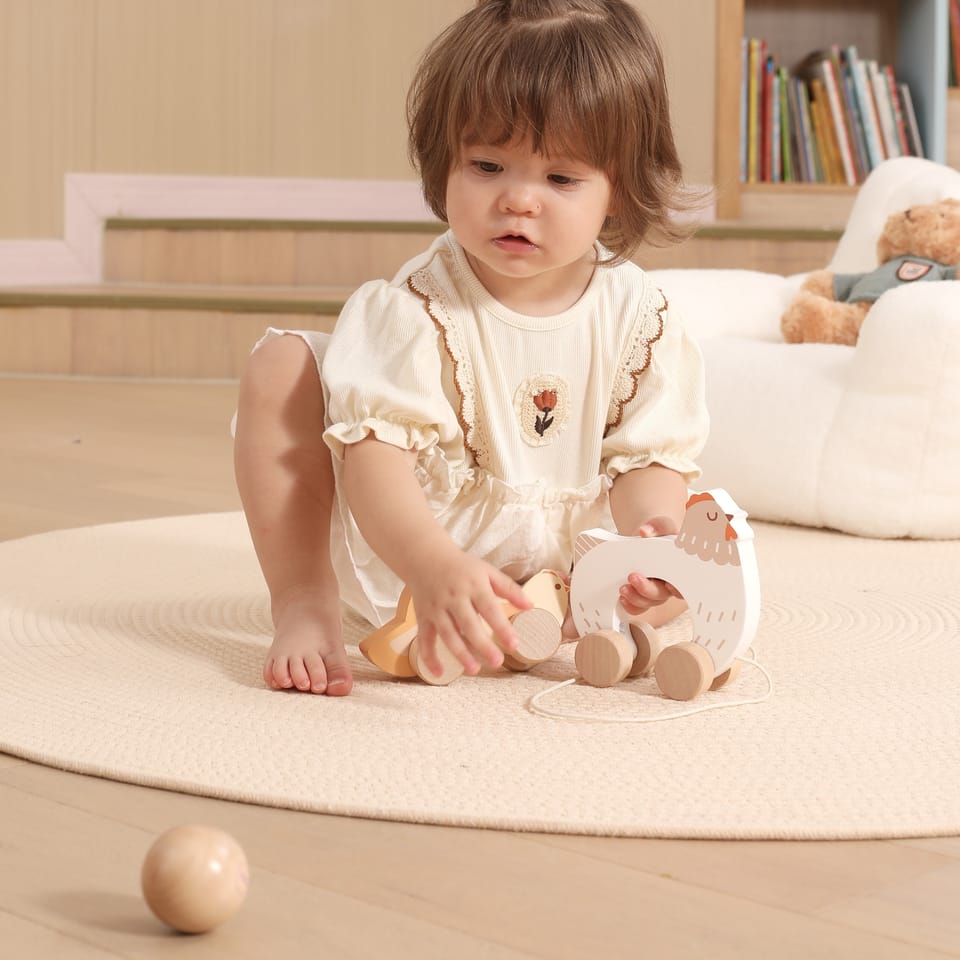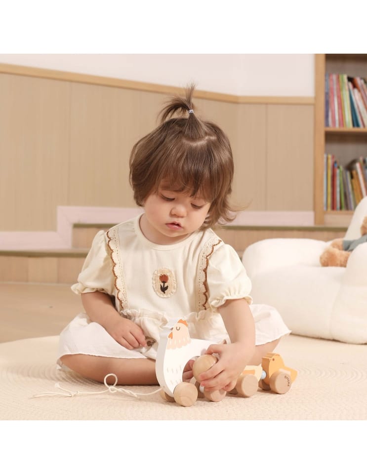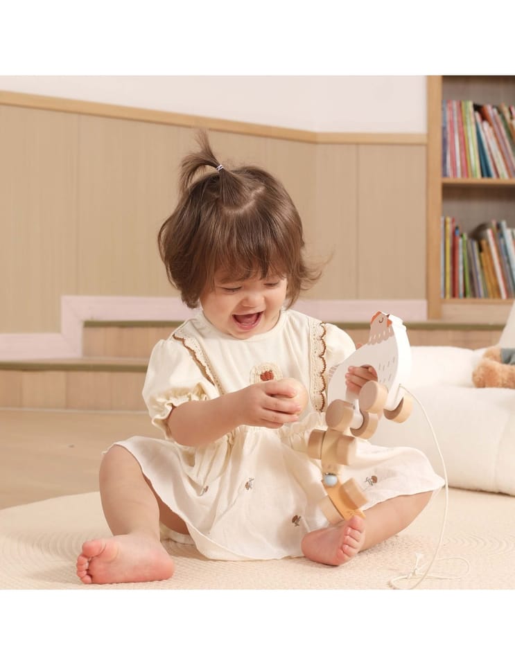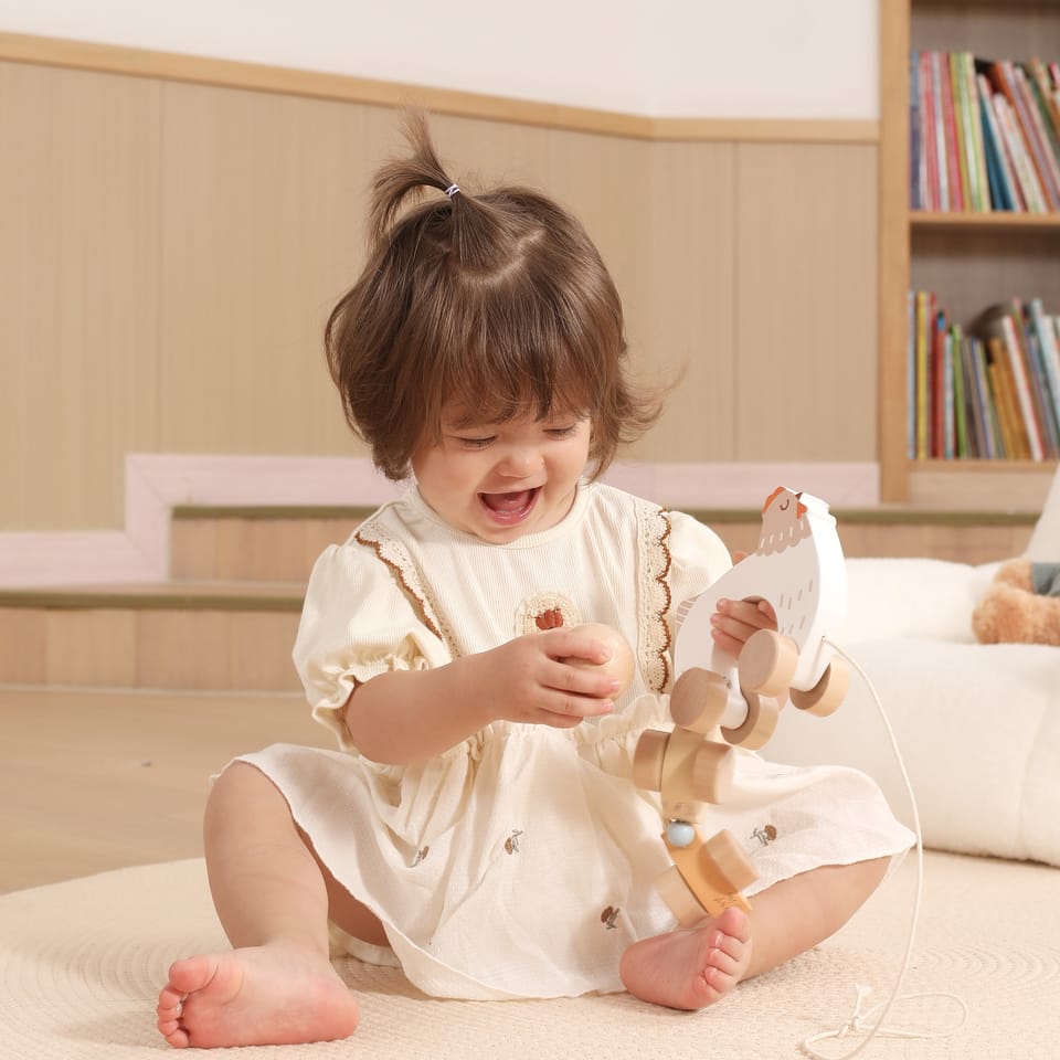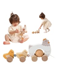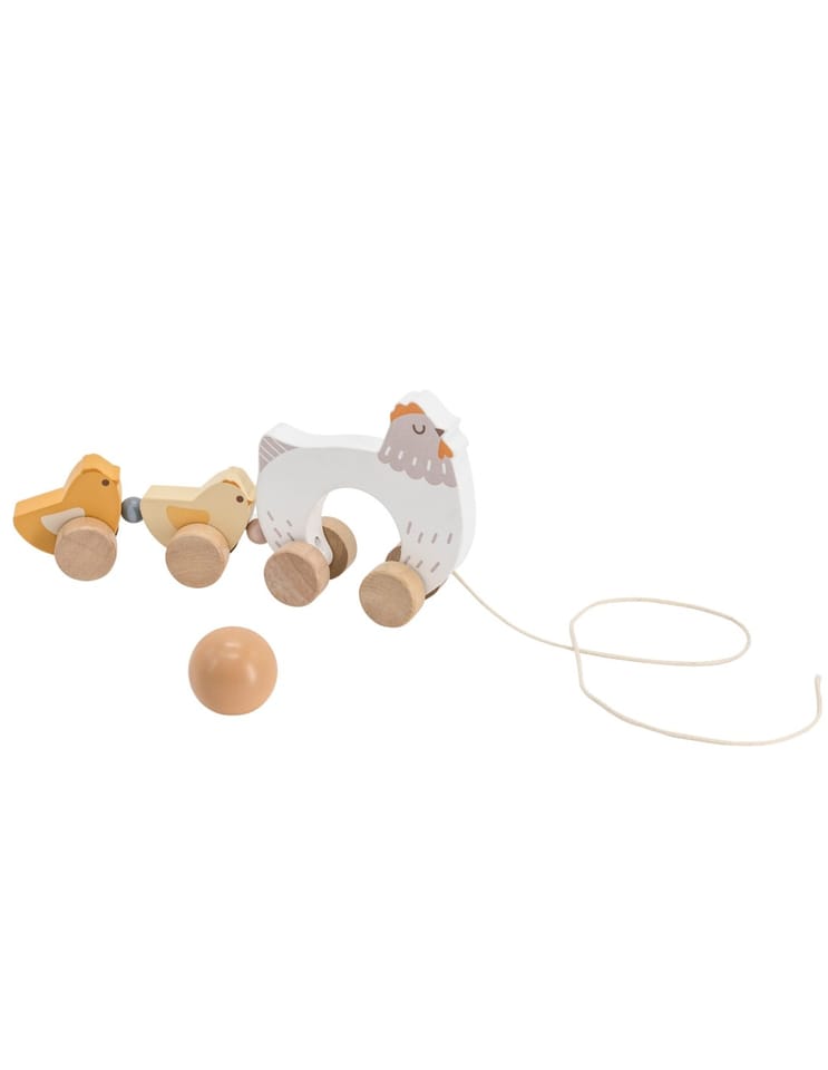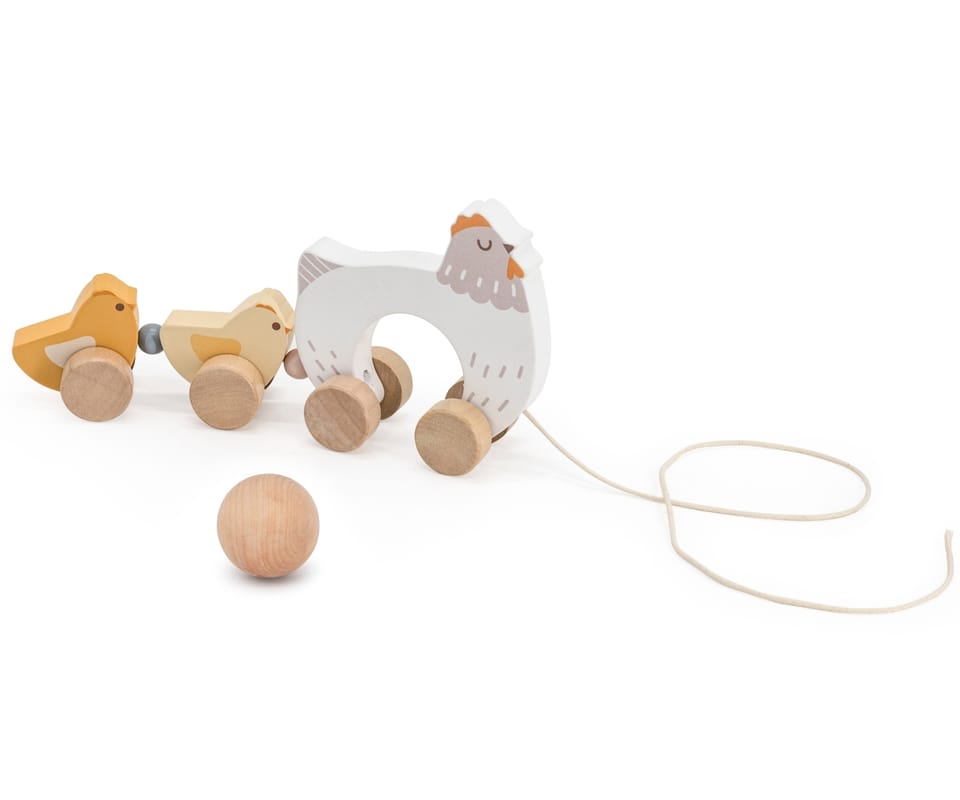- - 1 × drewniana kurka z kurczakami do ciągnięcia