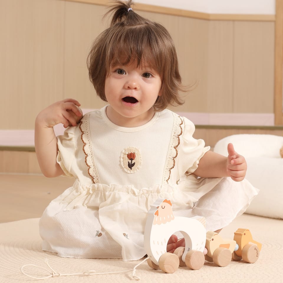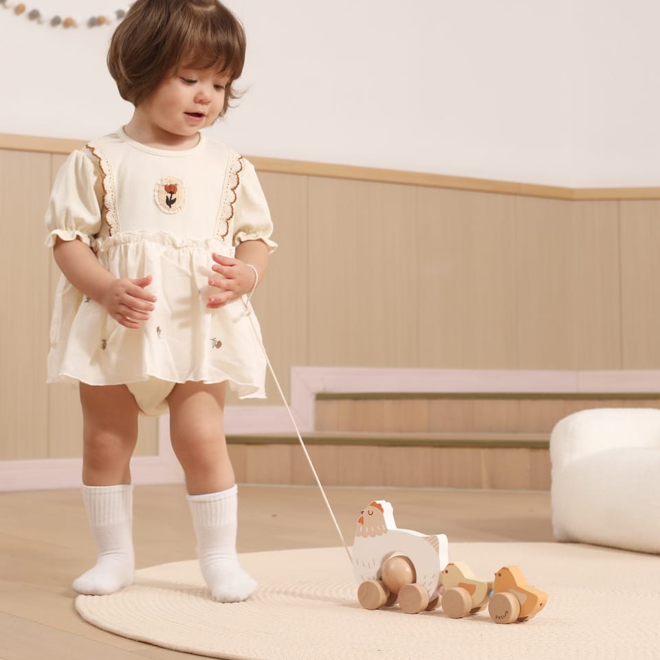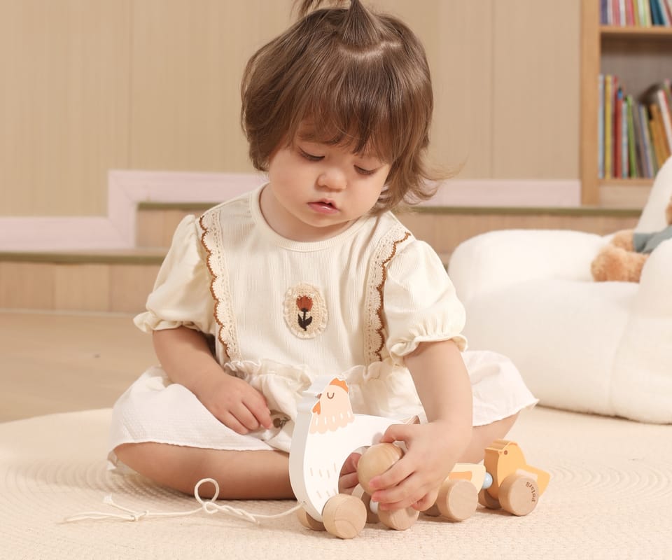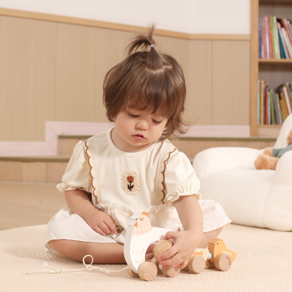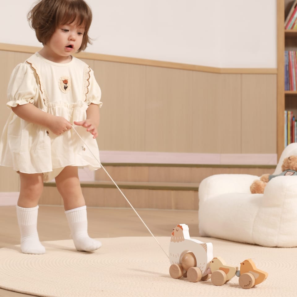 - - 1 × drewniana kurka z kurczakami do ciągnięcia
