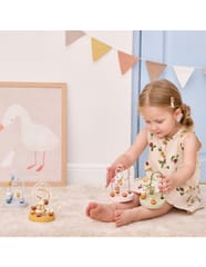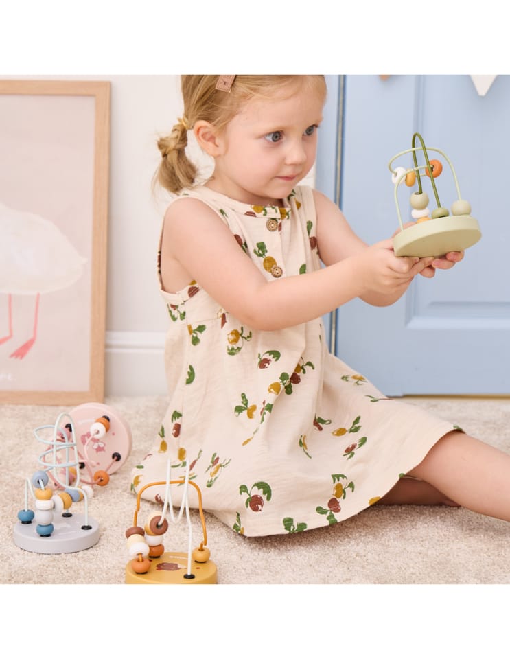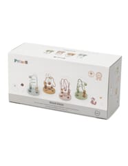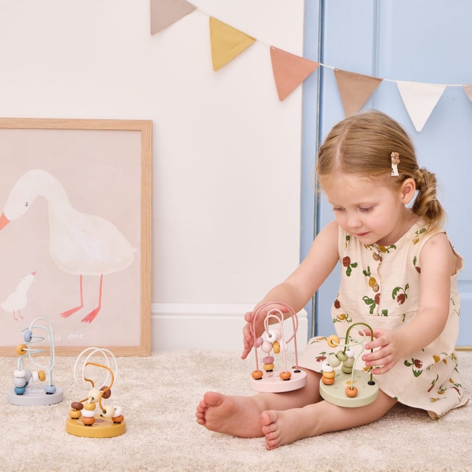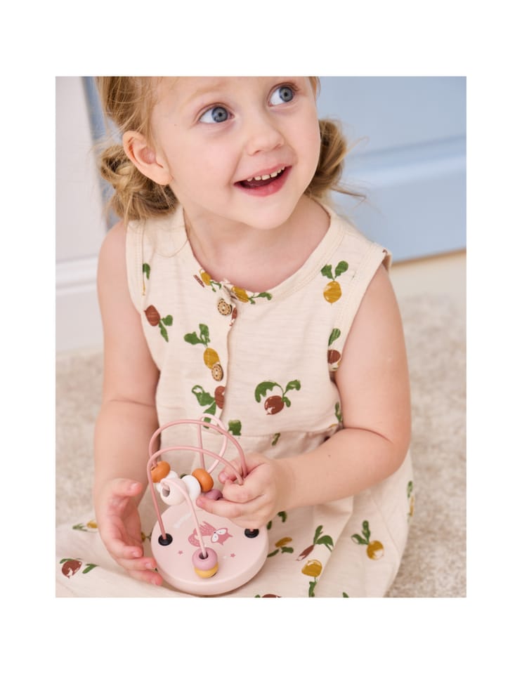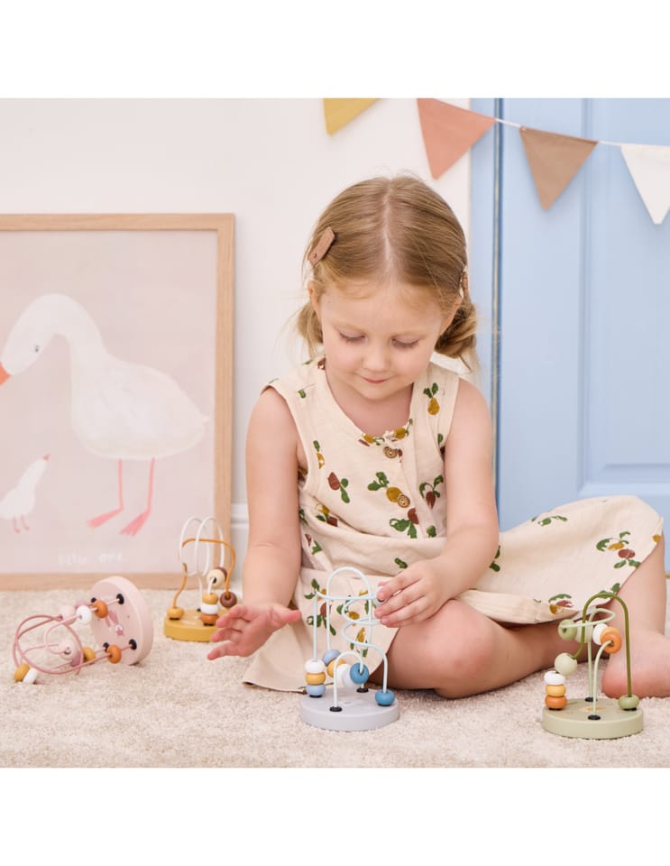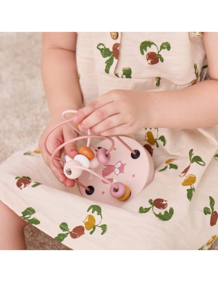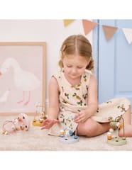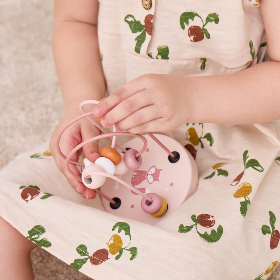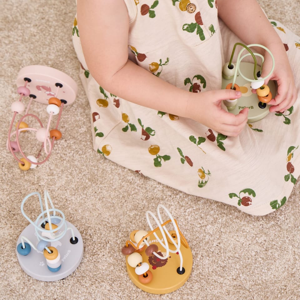 Drewniana pętla motoryczna to świetna zabawka sensoryczna, która pozwala dziecku trenować sprawność rączek. Przeplatając koraliki przez zakrzywione rurki, dziecko musi wykonywać odpowiednie ruchy, aby działania odniosły sukces. Tym sposobem dziecko uczy się jakie ruchy należy wykonywać, a zarazem ćwiczy zręczność i precyzję. Na drewnianej podstawie znajdziemy kolorowy obrazek, do której przymocowane są kolorowe rurki. Na rurki nawleczone jest 10 kolorowych koralików w dwóch kształtach, które na pewno przyciągną uwagę naszych pociech.