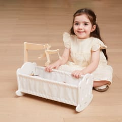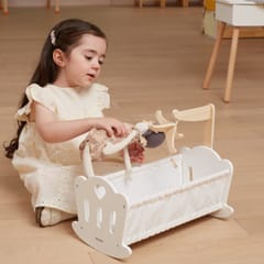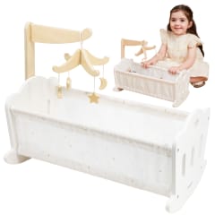 Połóż swoją lalkę do snu w pięknie wykonanej kołysce z serii PolarB marki VIGA. Kołyska posiada miękką bawełnianą poduszkę i kołderkę ze słodkim nadrukiem gwiazd i księżyca oraz uroczą karuzelę do łóżeczka. Pasuje do lalek o wysokości do 38 cm.