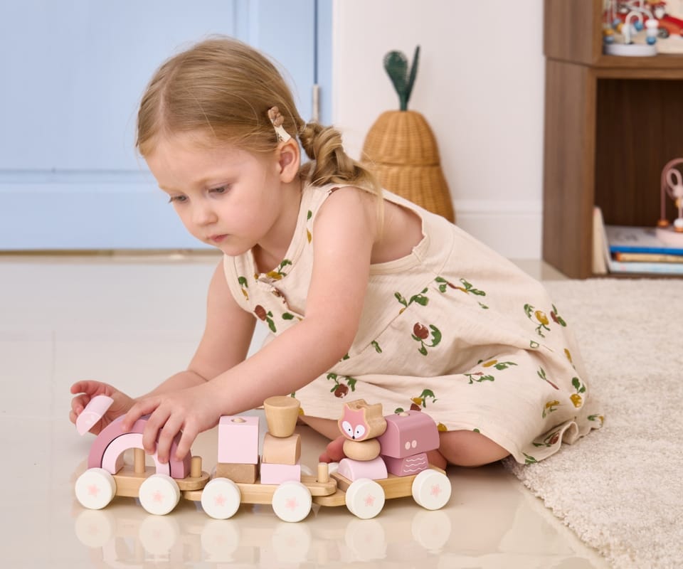 Urocza, różowa kolejka marki Viga z serii PolarB to idealna zabawka, która łączy radość zabawy z rozwijaniem zdolności manualnych i kreatywności. Składa się z 3 wagoników oraz 14 klocków o różnych kształtach, które można układać w dowolnych kombinacjach. Dziecko może łączyć wagoniki, tworzyć ciekawe konstrukcje lub bawić się nimi niezależnie – możliwości są nieograniczone! Dzięki stonowanym kolorom i wygodnym w uchwycie elementom, zabawka doskonale sprawdzi się u najmłodszych dzieci.
