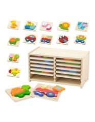 Pozwól dziecku wejść do świata kreatywnej zabawy z drewnianymi puzzlami Viga. 12 kolorowych plansz z prostymi kształtami i uroczymi obrazkami zachęca do układania i eksperymentowania. Zadaniem dziecka jest dopasowanie elementów do odpowiednich miejsc, co rozwija zdolności manualne i logiczne myślenie. Bezpieczne, lakierowane drewno i żywe kolory sprawiają, że zabawa jest nie tylko przyjemna, ale też całkowicie bezpieczna. Idealny sposób na naukę poprzez zabawę i pierwszy kontakt z puzzlami.