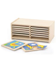 - - 12 kolorowych układanek w drewnianych ramkach