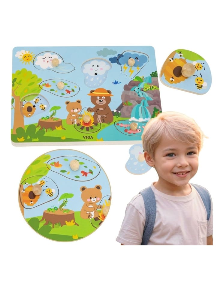 VIGA Puzzle Dźwiękowe Odkrywamy Naturę to interaktywna układanka, która wprowadza dziecko w świat dźwięków przyrody. Ta edukacyjna zabawka rozwija zdolności manualne i poznawcze, zachęcając do interaktywnej zabawy. Dzięki realistycznym efektom dźwiękowym maluch może poczuć się jak na prawdziwej leśnej wyprawie. To doskonała zabawa połączona z nauką, która rozwija wyobraźnię i ciekawość świata. Doskonała propozycja dla maluchów, które chcą poznawać świat poprzez interaktywną zabawę.