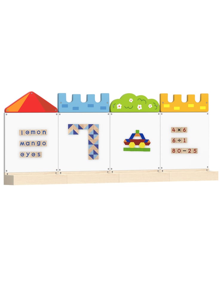 W skład zestawu Tablic Magnetycznych Ściennych VIGA Zamek wchodzą drewniane plansze z wieżami i koroną drzewa, oraz cztery tablice magnetyczne. Ten magiczny zestaw pobudzi wyobraźnię każdego dziecka, zapewniając radość oraz wyjątkowy rozwój umiejętności. Dzięki niemu maluchy będą miały niezliczone możliwości twórczego wyrażania siebie, rozwijania wyobraźni i zdobywania nowej wiedzy.