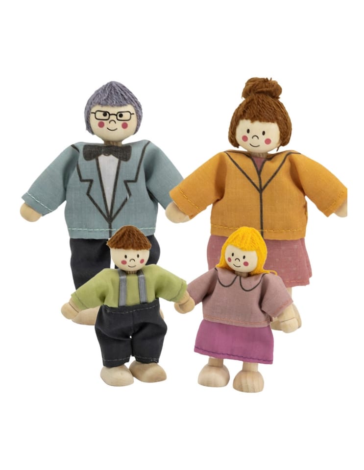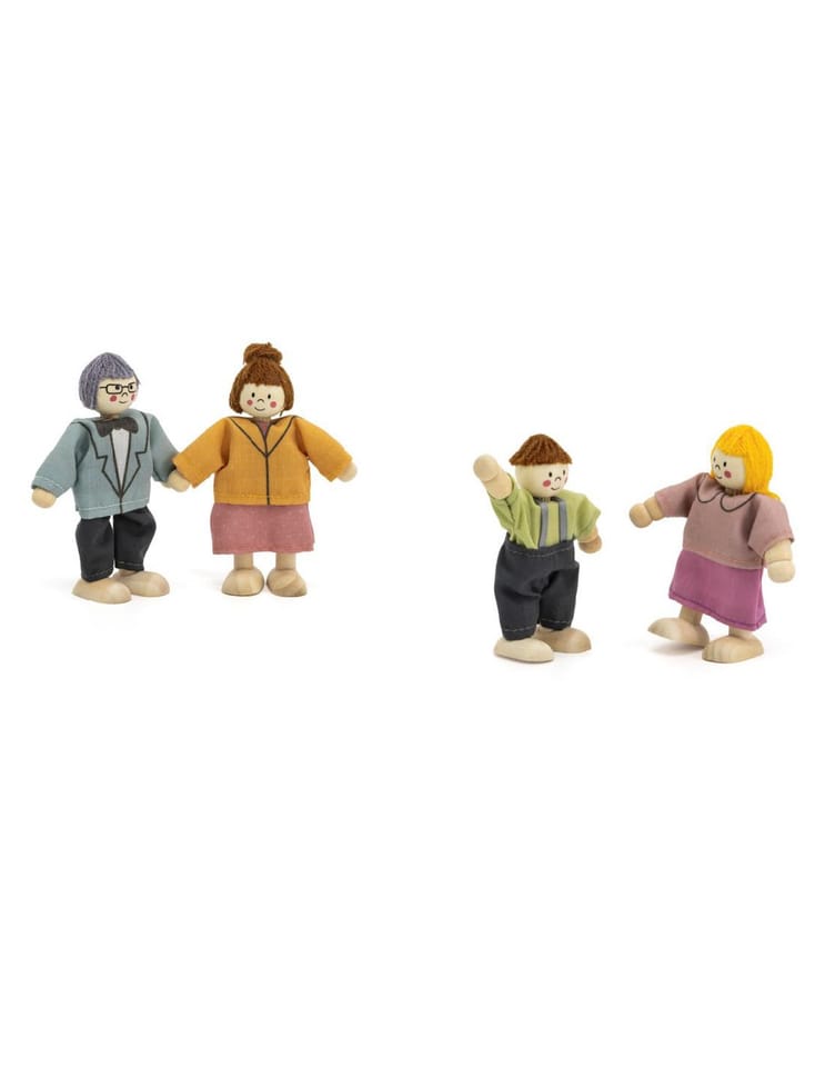 Zestaw "Rodzina Lalek" od marki VIGA to uroczy komplet czterech drewnianych postaci – mamy, taty, syna i córki. Lalki mają ruchome ręce i nogi, dzięki czemu można je ustawiać w różnych pozycjach, co sprzyja kreatywnej zabawie i odgrywaniu ról. Każda laleczka ubrana jest w kolorowe, materiałowe ubranka, które dodają uroku i realizmu. Solidne wykonanie z drewna oraz sympatyczny design sprawiają, że zestaw idealnie nadaje się do zabawy w domku dla lalek lub jako samodzielna zabawka. To świetny sposób na rozwijanie wyobraźni i wspólną zabawę z rodziną.