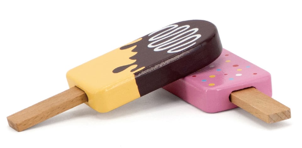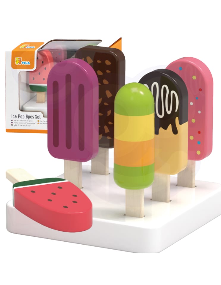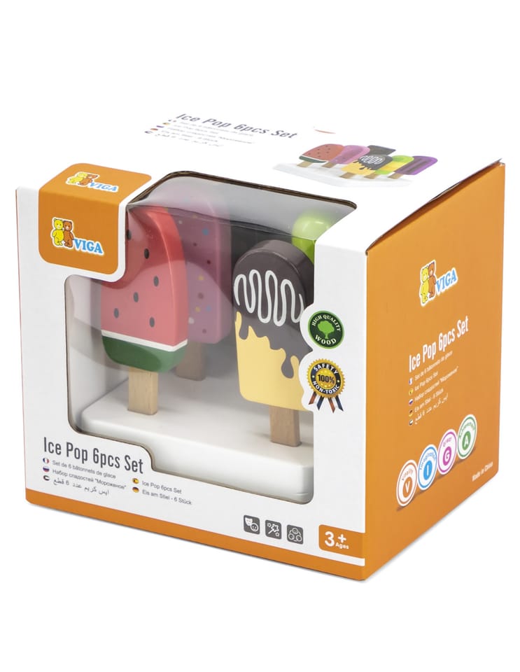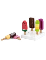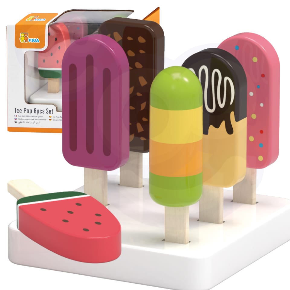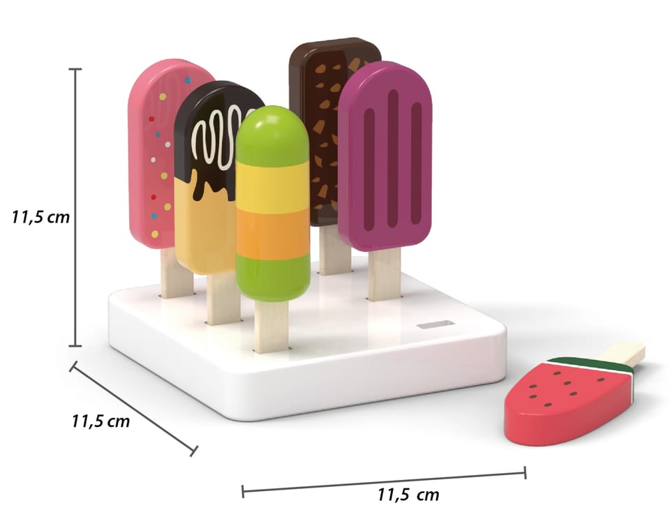 Drewniany zestaw sześciu lodów idealnych na deser w upalny dzień. Lody w pięknej, smakowitej kolorystyce wykonane ze starannością o każdy szczegół. Ten drewniany zestaw świetnie sprawdzi się w zabawie w sklep, jak również jako akcesoria wyposażenia dziecięcej kuchni. Świetna jakość wykonania, urocza kolorystyka, praktyczność i funkcjonalność. Zabawa w dom, zabawa w sklep i naśladowanie ról dorosłych - to kreatywny sposób na kształtowanie relacji społecznych, oraz rozwijanie i poznawanie słownictwa.