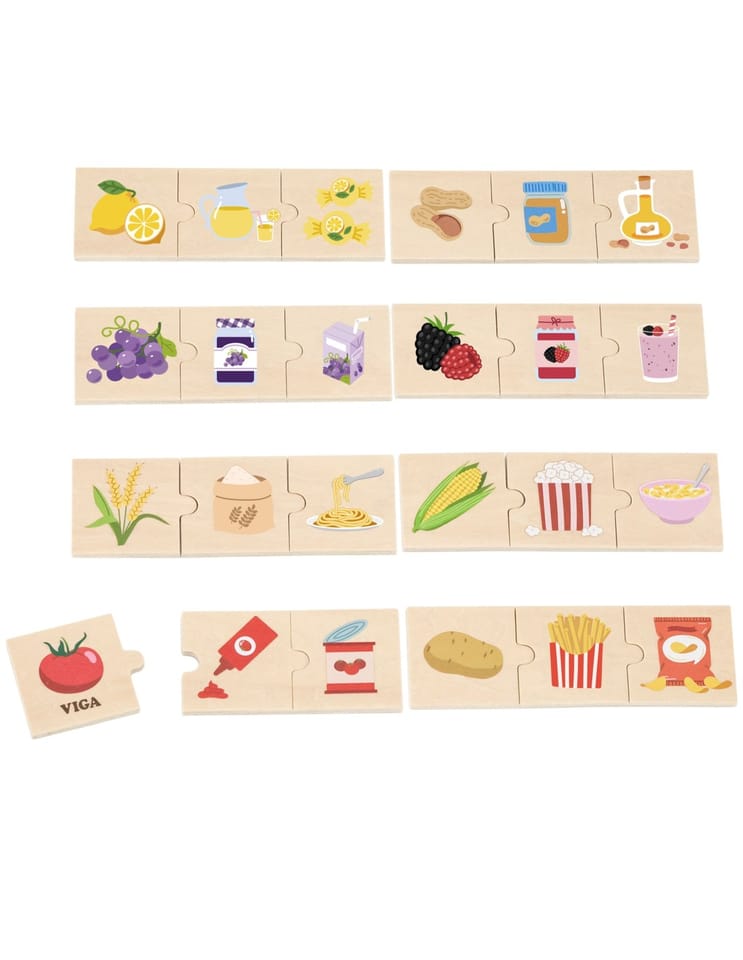 VIGA Zestaw Puzzli Odkrywaj Związki Między Naturą a Jedzeniem uczy dzieci w zabawny sposób, jak produkty roślinne są przetwarzane na pyszne produkty spożywcze. Dopasowując rośliny i zbiory do produktów, takich jak popcorn, płatki zbożowe, masło orzechowe czy makaron, maluchy odkrywają, skąd pochodzą te codzienne przysmaki. Tego rodzaju zabawa rozwija zrozumienie procesów związanych z produkcją żywności i zachęca do poznawania etapów przetwarzania plonów.