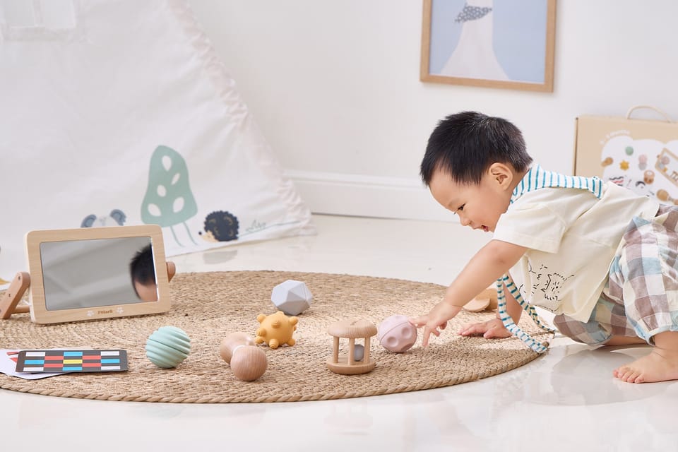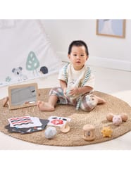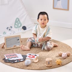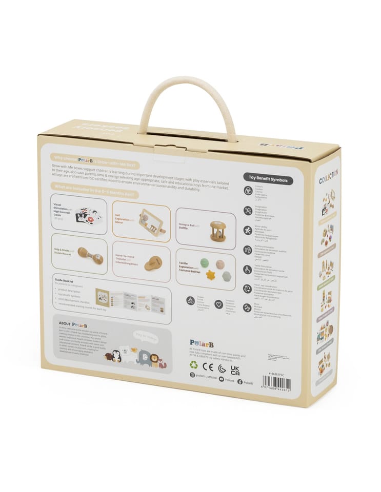 Grow-with-Me Box (0-6M) to zestaw sensoryczny stworzony specjalnie dla maluszków, aby wspierać ich rozwój od pierwszych dni życia. W pudełku znajdziesz zabawki, które stymulują wzrok, słuch i dotyk, pomagając w rozwijaniu koordynacji i umiejętności motorycznych. Każdy element został wykonany z najwyższej jakości materiałów, w tym drewna certyfikowanego przez FSC, co gwarantuje bezpieczeństwo i trwałość. To idealne rozwiązanie dla rodziców szukających kompleksowego wsparcia rozwojowego dla swojego dziecka.