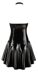 Short and tight-fitting vinyl dressFlared skirt part with a dipped hemCups and halterneck made out of powernetFull-length zip at the frontA seductive combination of shiny vinyl and transparency!A short dress from Black Level that is completely made out of black, shiny vinyl except for the cups and halterneck that are made out of powernet. The tight-fitting dress has a flared skirt part that is slightly longer at the back than it is at the front. There is a full-length zip at the front that starts at the low-cut cleavage area and stops at the hem.100% polyester, polyurethane coating; powernet 95% polyamide, 5% spandex.