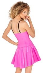 Waisted dress made of pink vinylUnderlaid zip at the frontFlared, asymmetrical skirtMoulded cupsAdjustable strapsShiny glamour in bright pink!Short dress from Black Level completely in glossy pink vinyl. Front with full-length, underlaid, silver-coloured zip. In a close-fitting fitted cut with a flared, asymmetrical skirt that is cut shorter at the front than at the back. Cups cut out for a deep, beautiful cleavage. The black straps are adjustable to fit.100% polyester, polyurethane coating.