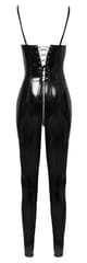 Curvaceous design in a corset style!Figure-hugging strap jumpsuit from Black Level completely in black vinyl with long slim legs. Can also be worn strapless - the adjustable straps are removable. Waisted top designed like a corset; reinforced with variable lacing in the back. The silver-coloured 3-way zip runs from the neckline through the crotch to the lacing above the bottom; it can be opened in different ways. 100% polyester, polyurethane coating.
