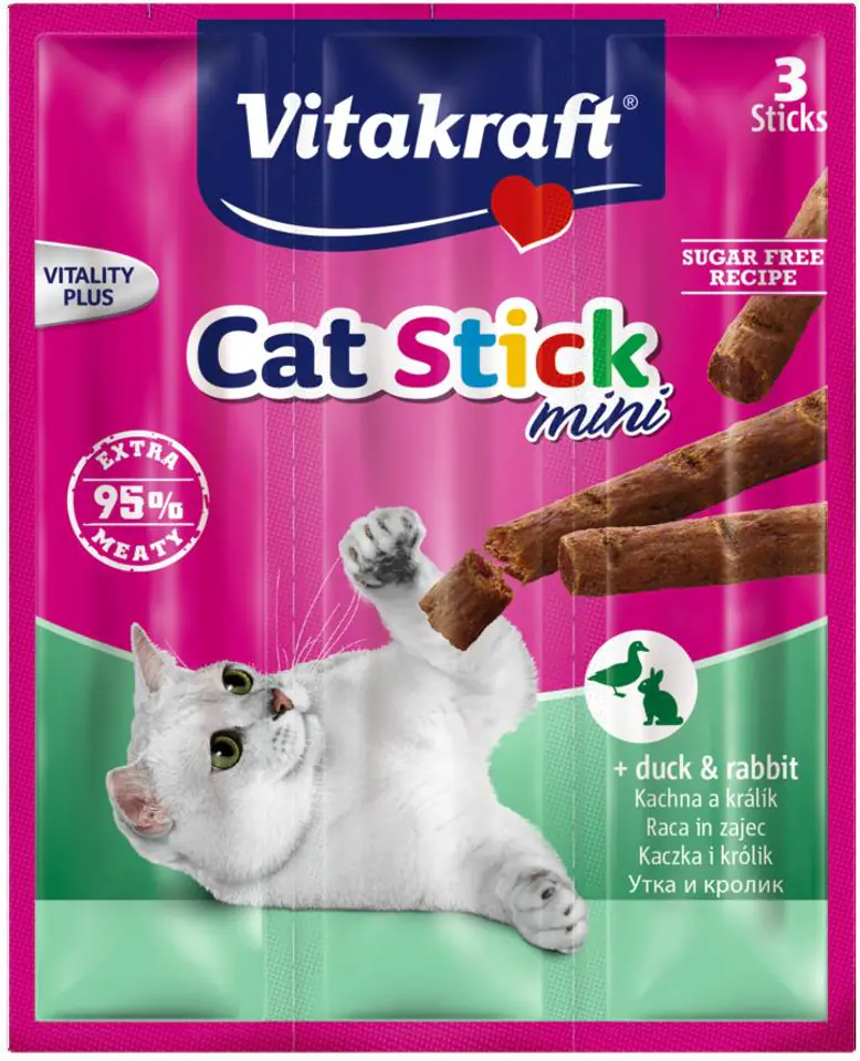 Karma uzupełniająca dla kotów w formie kabanosów o wysokiej zawartości mięsa. Pyszna przekąska dla każdego kota. Duży wybór smaków. Opakowanie zawiera 3 sztuki.