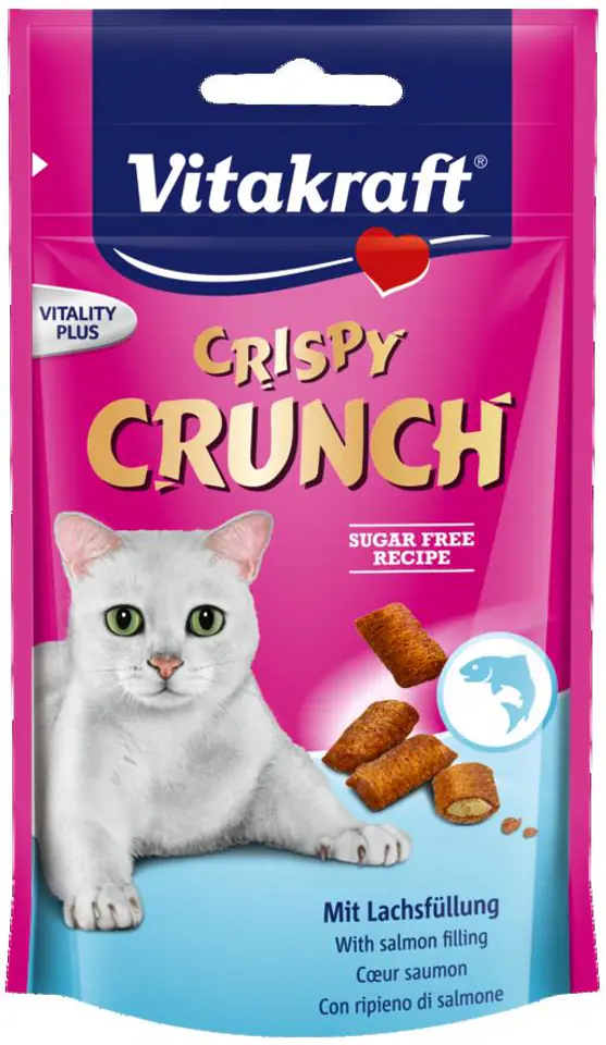 Karma uzupełniająca dla kotów w postaci chrupiących poduszeczek z kremowym nadzieniem w czterech smakach, m.in. dwa warianty funkcjonalne DENTAL i SŁÓD. Wspomagają odświeżenie oddechu i ułatwiają wydalanie połkniętej sierści z przewodu pokarmowego.