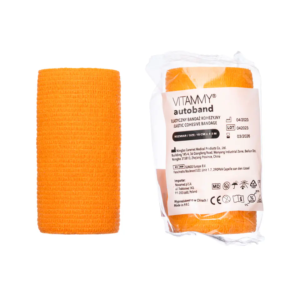 VITAMMY AUTOBAND POMARAŃCZOWY 10cm x 450cm Elastyczny bandaż kohezyjny samoprzylepny
