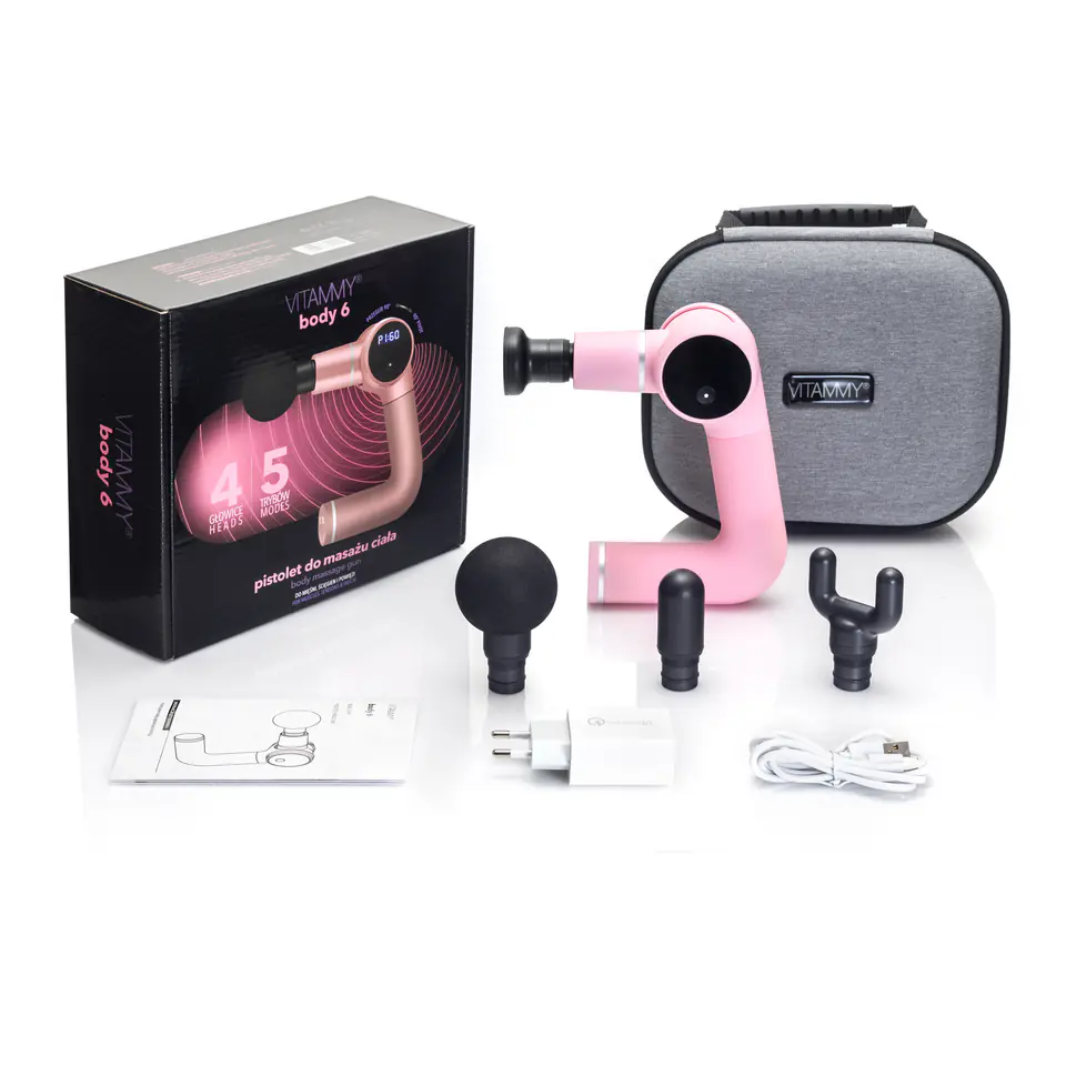 VITAMMY BODY 6 RÓŻOWY Pistolet do masażu ciała, ergonomiczny uchwyt obrotowy